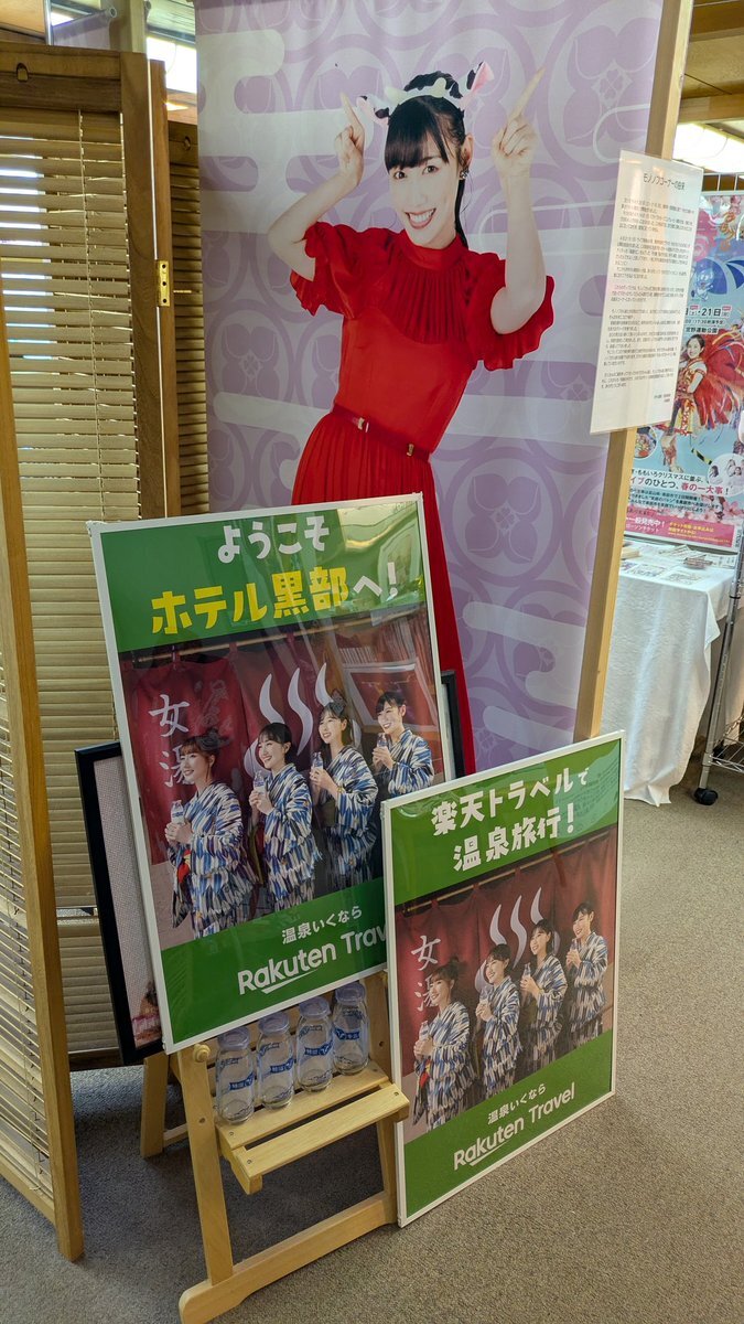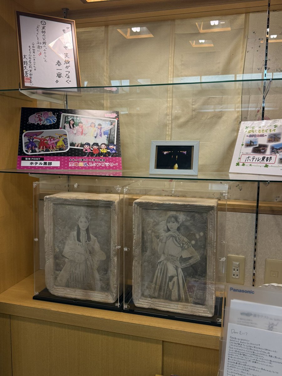【ホテル黒部】1/4 次はホテル黒部さん!個人的には世界屈指の聖地だと思ってます。ももクロが黒部に来るって決まった頃はグッズがいくつか並んでいただけなのに今ではほぼ博物館(笑)モノノフさんのおかげで今は素敵な聖地です! →2/4へ続く #ももクロ #春の一大事2019 Day2403 #ホテル黒部 pic.x.com/hoTzHtBMxe