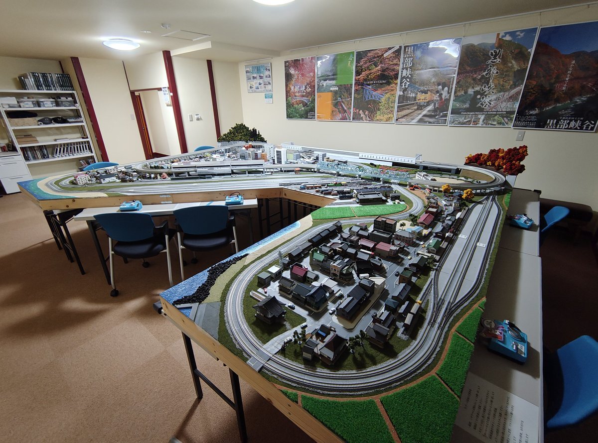 今日は親友に連れられてホテル黒部へ 黒部は何度か来てるけどこんな夢のホテルがあるとは! 8線のレイアウトに作業卓まで用意されている!? 事前に知っていたら車両持って来てたのに〜😭 食事も美味しいし温泉もいいし 富山方面に来たらここを常宿にしたい😊 #宇奈月温泉 #ホテル黒部 pic.x.com/u29yMbQRlV