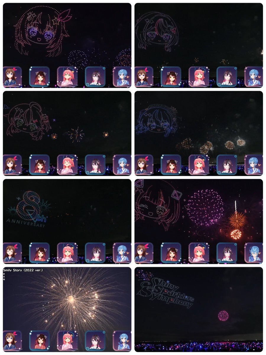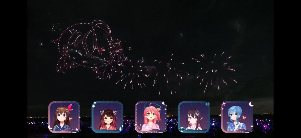普通に花火&ドローンショーを見るだけでも十分面白いと思うけど、ホロメンが雑談したり会場に何か呼びかけたりしながらってのが更に面白かったなと強く感じた 花火をじっくり見るのが超久しぶり&ドローンショーは初なので本当に良い経験になった #ホロ花火