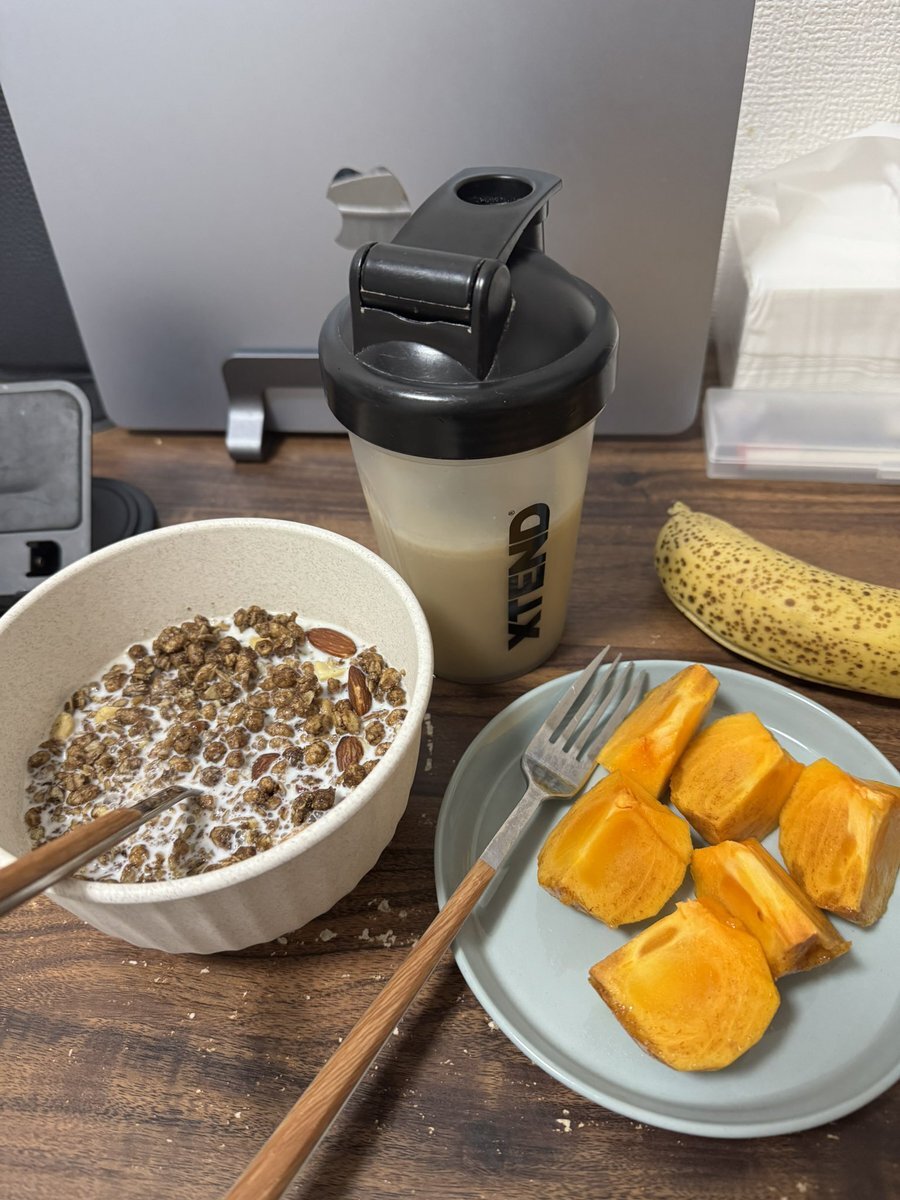 おはよう ビルダーとしては30点の食事 でもこれが美味いんだよなー フルーツとプロテイン飲めば相殺できると思っている笑 #筋トレ好きな人と繋がりたい #ボディビル pic.x.com/Z3d25Gwqk3