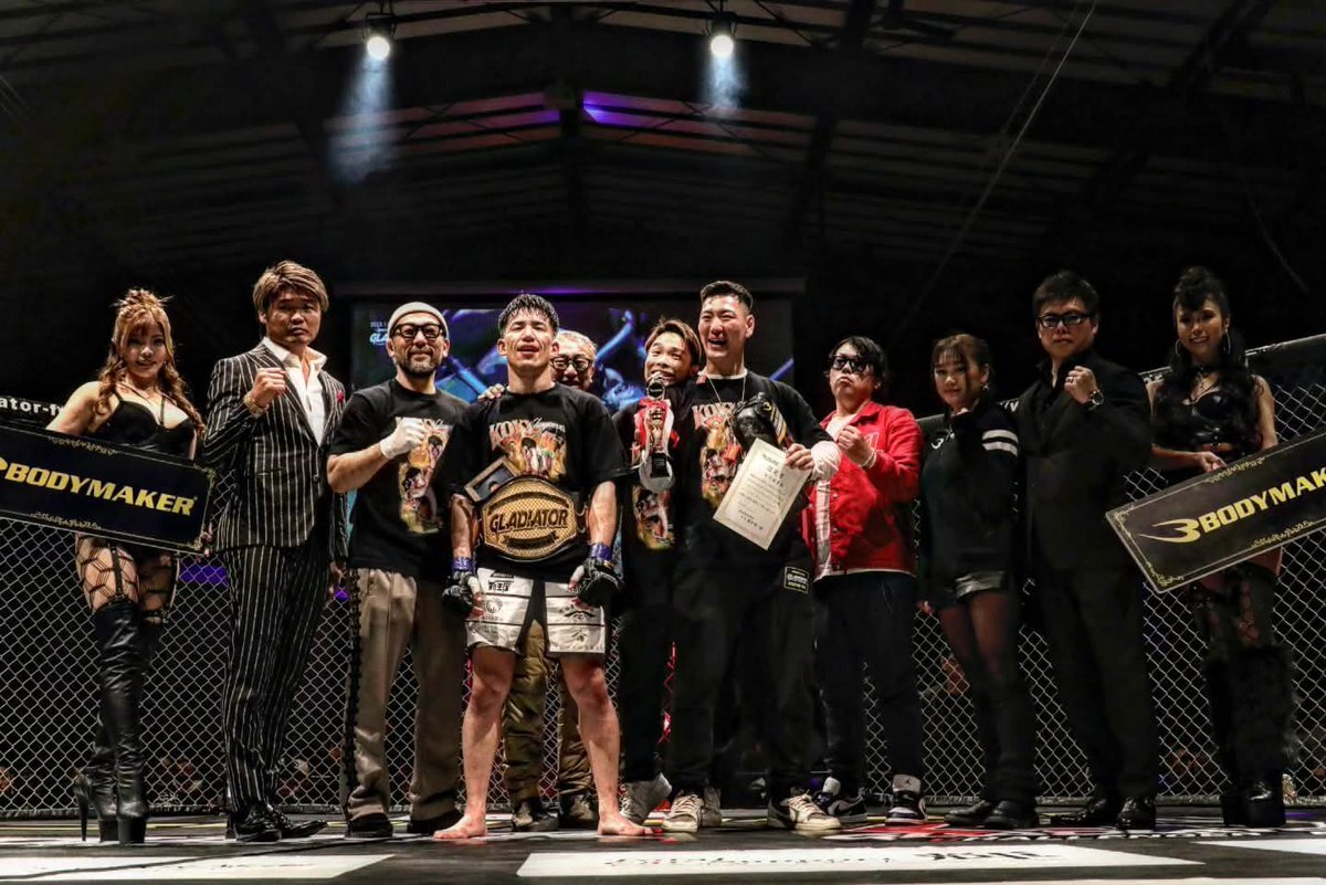 2025 11/30 sun BODYMAKERpresents 『GLADIATOR 033』in 176BOX 第11試合 ■GLADIATORフライ級王者決定戦5分3R ○今井健斗(マーシャルアーツクラブ中津川) vs ✕岩崎圭吾(SMOKERGYM) 2R 2分9秒 チョークスリーパー ※今井が第6代フライ級王者に #gladiator #ボディメーカー #bodymaker pic.x.com/lP7AUTggX9