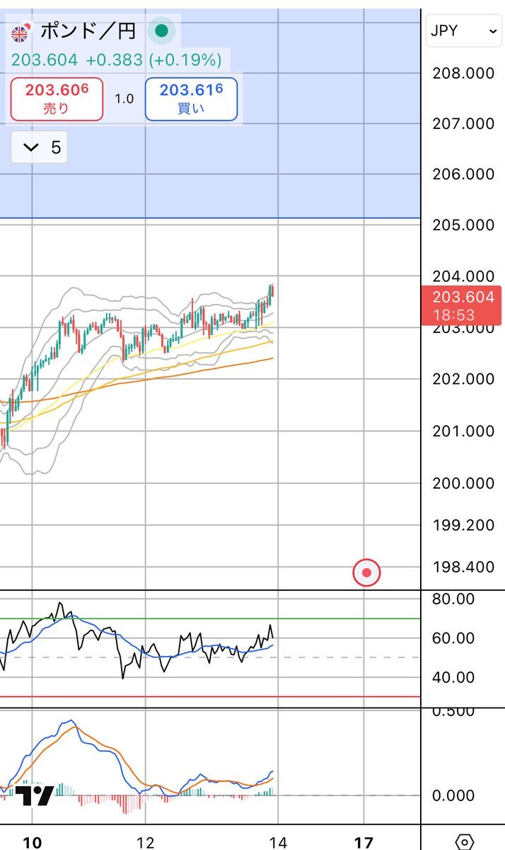 #gbpjpy #ポン円 1時間足 203.8付近までは行ったけど… なんかグンと下がってから全戻し→上げもある? 飛べばバンザイ。 欲張りすぎないように。 #fx pic.x.com/k3WQJbdWEH