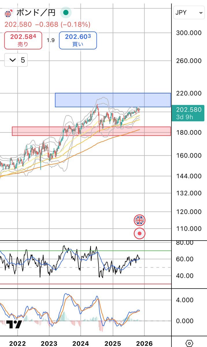#gbpjpy #ポン円 月足 ロング優勢で直近高値〜220.0を長期的に目指すのでは? 一旦直近の抵抗で戻される可能性もあるが、ドル円同様に押したら買いたい。 #fx pic.x.com/pa8FgINqI1