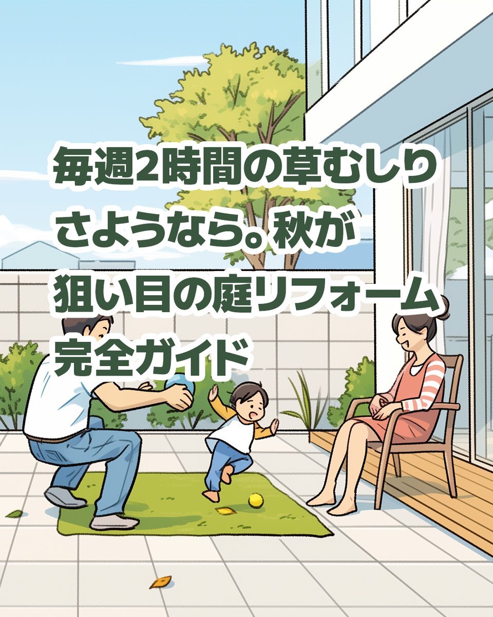 毎週末2時間の草むしり、もう限界じゃないですか? 実は庭リフォームの「今」が絶好のタイミング。春より秋施工が長持ちする理由と、メンテナンスフリーを実現する3つの方法を徹底比較しました。 初期費用だけで選ぶと後悔するかも。 #庭リフォーム #雑草対策 #マイホーム pic.x.com/ow5BXONSmw