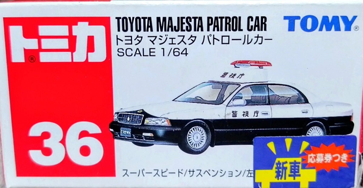 トミカ紹介 懐かしのトミカ:トヨタ クラウンマジェスタ 警視庁パトカー🚓 #トミカ #トヨタ  #マジェスタ #パトカー こちらも昨日秋葉原の駿河屋で購入した懐かしのトミカ:クラウンマジェスタ 警視庁パトカーです、ドア開閉やブーメランパトランプの昇降などのアクションがあります…実車は既に引退 pic.x.com/Kyg55jPZ46