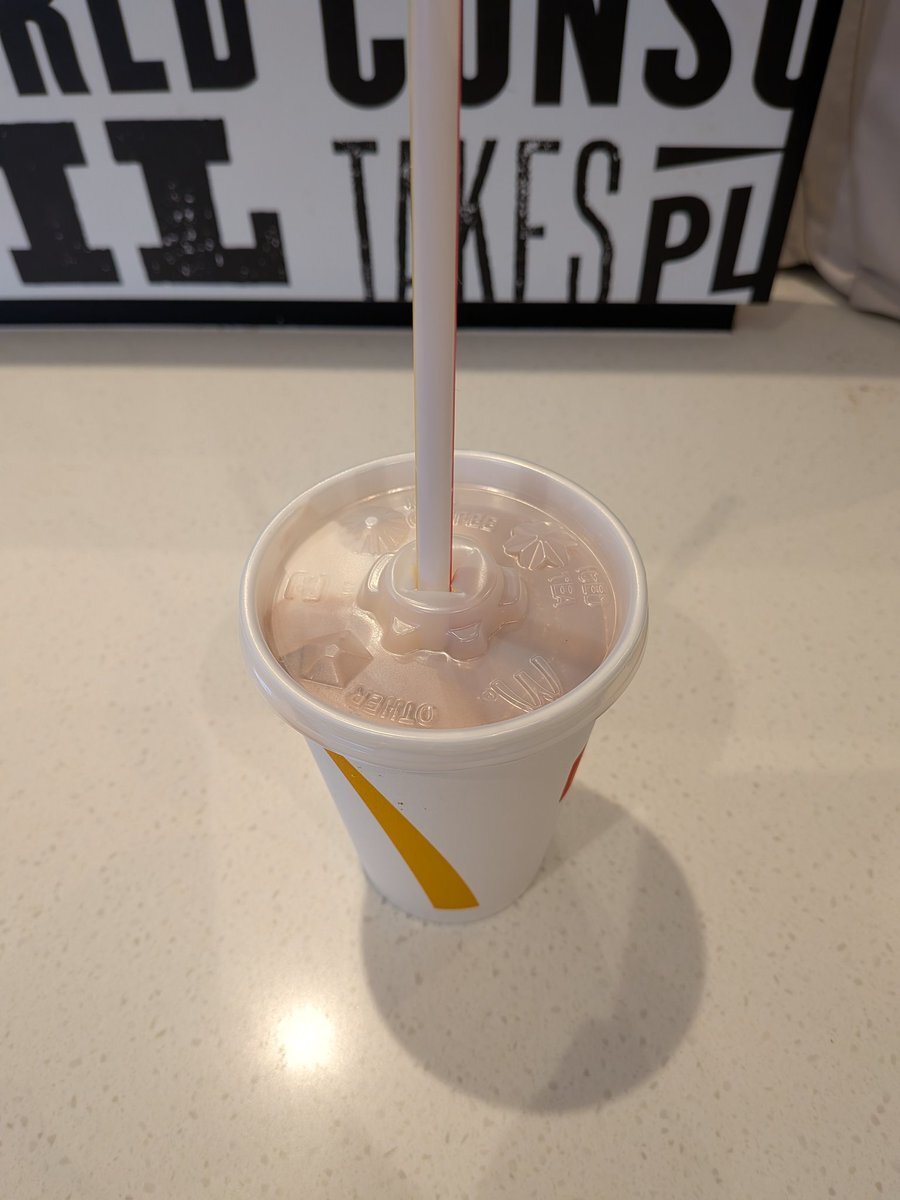 マックのドリンクの蓋変わるのは構わないがシェイクまでストロー無しはどうかと思う。。 溶けないと出てこない😥 子どもたちが騒いでおります😱 #マック #マックシェイク pic.x.com/WiC96ArIY1