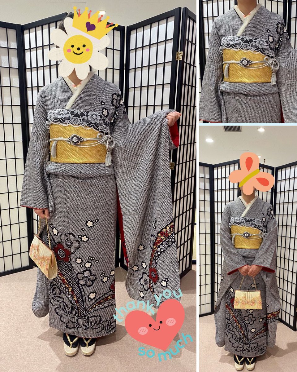 ママ振りでご来店のお嬢様の、ご契約ショット✨ チュールやレースを合わせて、モノトーンでシックで ありながらも、柔らかい雰囲気にコーディネートして いただきました☺️ #ジョイフル恵利アウトレット #ジョイフル恵利OUTLET #ジョイフル恵利 #北千住 #振袖レンタル #安い #ママ振 #モノトーン pic.x.com/U2I4jyDCB7