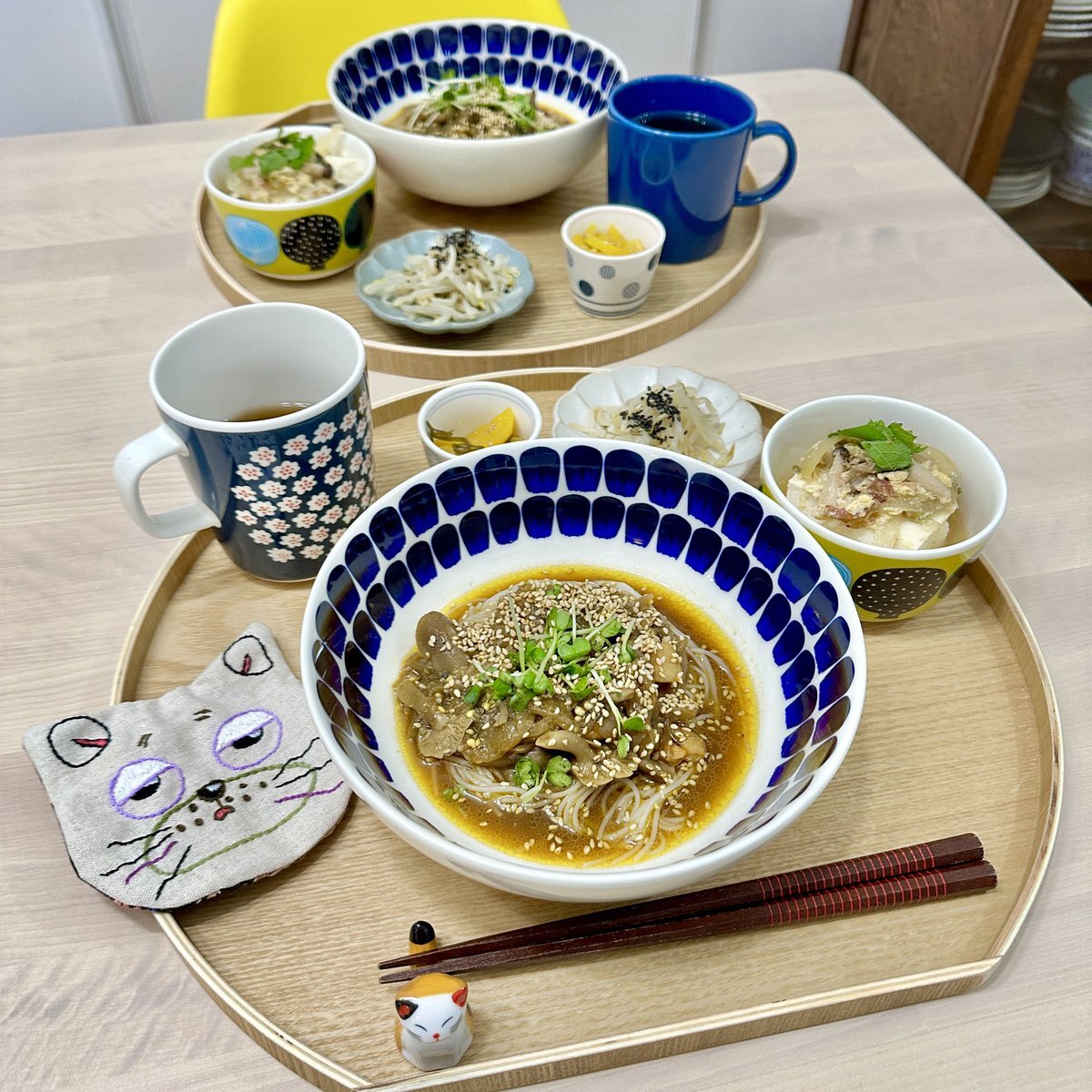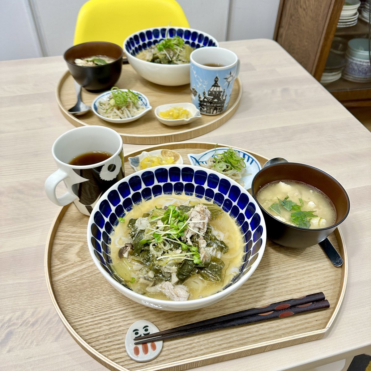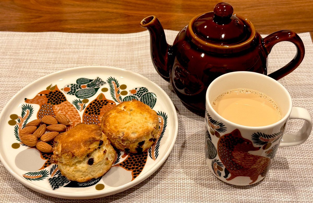 お気に入りのセットでモーニングなう☕️🫖 リベイクスコーンに合わせて 夏摘みアッサムの『デジョー』をミルクティーに✨✨ 堅実硬派なアッサムティー🍂芯の通った高級感のある味わいです🦊三🦊 さぁ〜て今日も稽古がんばっぺ🪭 #木漏れ日のお茶会 #茶好連 #マリメッコ pic.x.com/dPNDn8mgdM