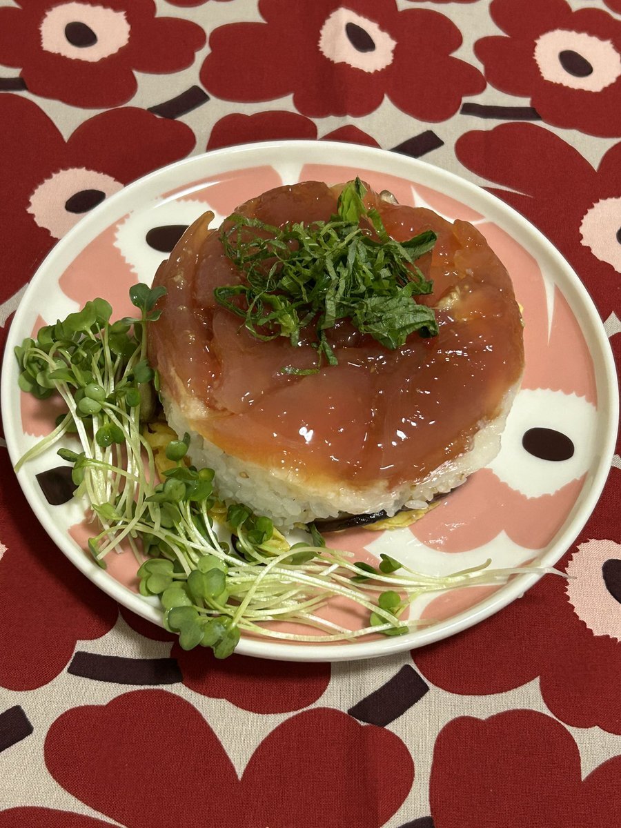 漬けマグロとろろケーキ😋 お土産で頂いた伝統の旭川しょうゆ🛍️ うす塩仕立てなのに、色・味・香のバランス良くて👌 ツヤッツヤな✨漬けマグロを🍣 酢飯・椎茸・錦糸卵・長芋おろしを重ねて美味しくいただきました🤤 #漬けマグロ #寿司ケーキ #marimekko #マリメッコ #unikko #ウニッコ pic.x.com/pbZdIU5dmm