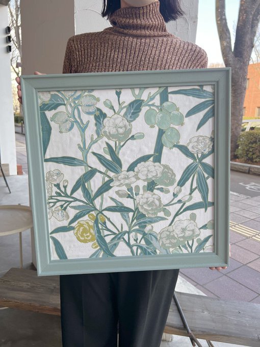 アルバイトさんと壁紙で アートパネルを作ってみました!🌿 縁も壁紙に合わせて塗料で塗り塗り、、 左下の黄色の花を入れるか迷ったけど 入れて正解💡 アクセントになっていい感じになりました💛 壁紙ならではのテクスチャーも可愛すぎ〜🥰 次は #マリメッコ でも作ってみようかな💭 pic.x.com/OR5DAcSyDO