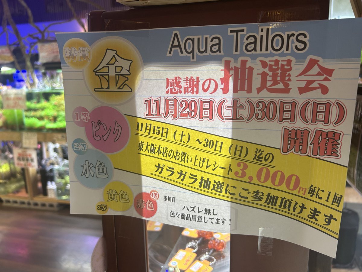 さらに29日、30日にはガラガラ抽選会が開催🌈 15日から30日まで、東大阪本店にてお買い上げのレシート3,000円毎に1回挑戦⚡️ レシートは合算可能なのでしっかり保管をお願いします🫶🫶 #アクアテイラーズ #アクアテイラーズ東大阪本店 #アクアリウム #テラリウム #パルダリウム #マリンアクアリウム pic.x.com/GPKNtvCbhO