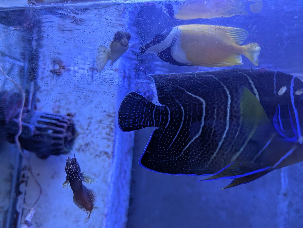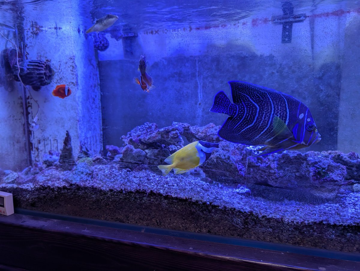 薬浴していたマンジュウイシモチ達が本水槽に戻ってきて1週間がたちました 今の所、食欲もあるし白点も出てきてないし、オグサレとかも出てなさそう!😳 このまま、落ち着いてくれる事を祈ってる🙏 背面の貝の卵?がずっと気になってるけど、調べたら問題は無そうな感じぽい?🤔 #マリンアクアリウム pic.x.com/TTotFUpIau