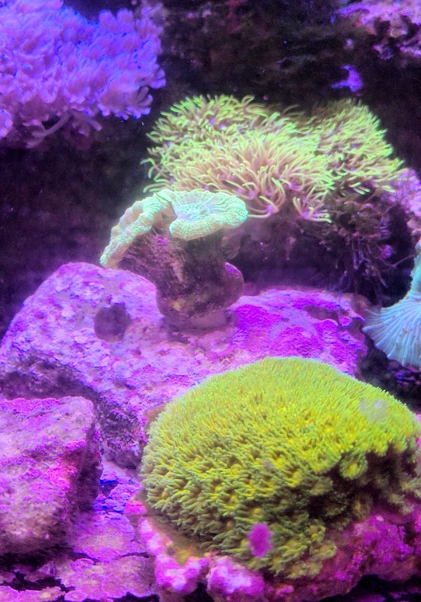 この緑色のイソギンチャク?サンゴ? 何かわかる人いますかあああ! 害ないと良いけど…🥺 #サンゴ水槽 #海水水槽 #マリンアクアリウム #初心者 pic.x.com/4TMUauSC43