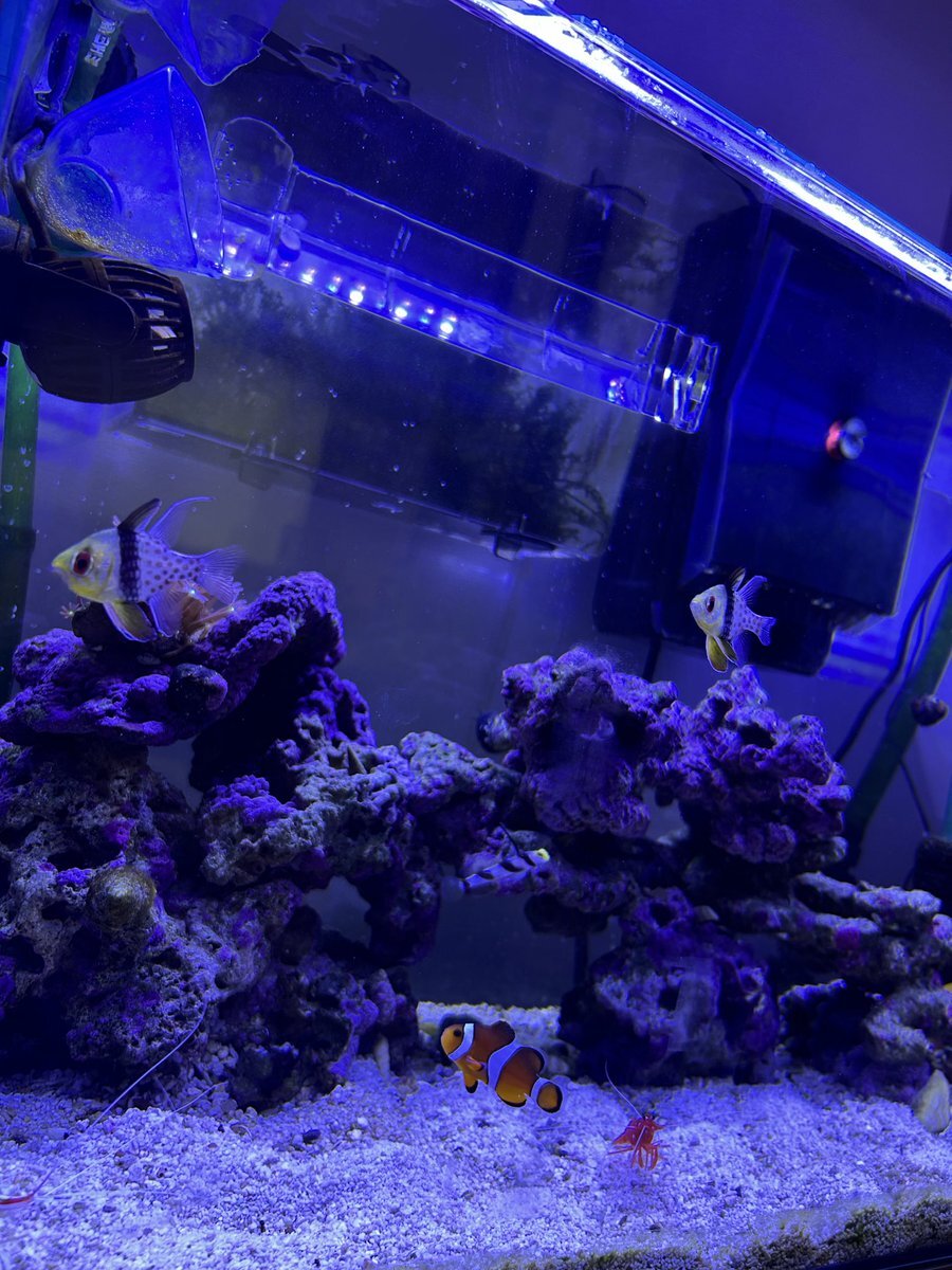 30cm水槽でヒメシャコガイ飼おうとすると水槽の中機械でいっぱいになってしまうのなんとかなりませんかね。 外掛けのプロテインスキマー、外部フィルターのポンプ、ヒーターまで入れると水槽内が狭い。 #海水水槽 #マリンアクアリウム