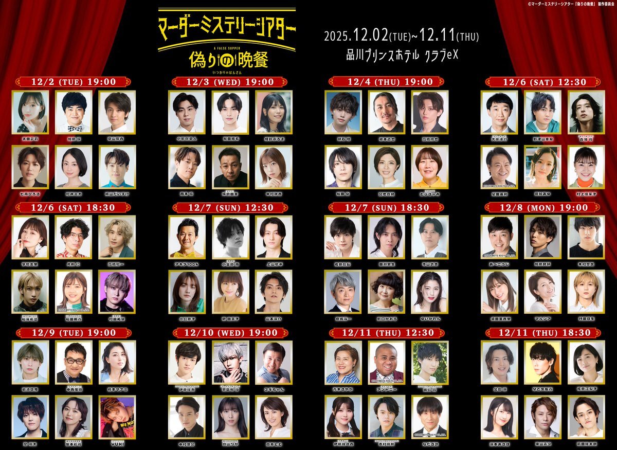一生に一度のゲーム×全編アドリブ×リアル体感型ステージの最新作 ◤ ̄ ̄ ̄ ̄ ̄ ̄ ̄ ̄ ̄ ̄ #マーダーミステリーシアター 『#偽りの晩餐』🍽️ __________◢ 2025年12月2日〜12月11日 品川プリンスホテル クラブeX 総勢72名の豪華キャストを迎えて、新作を上演✨ HP▶️murdermysterytheater.jp