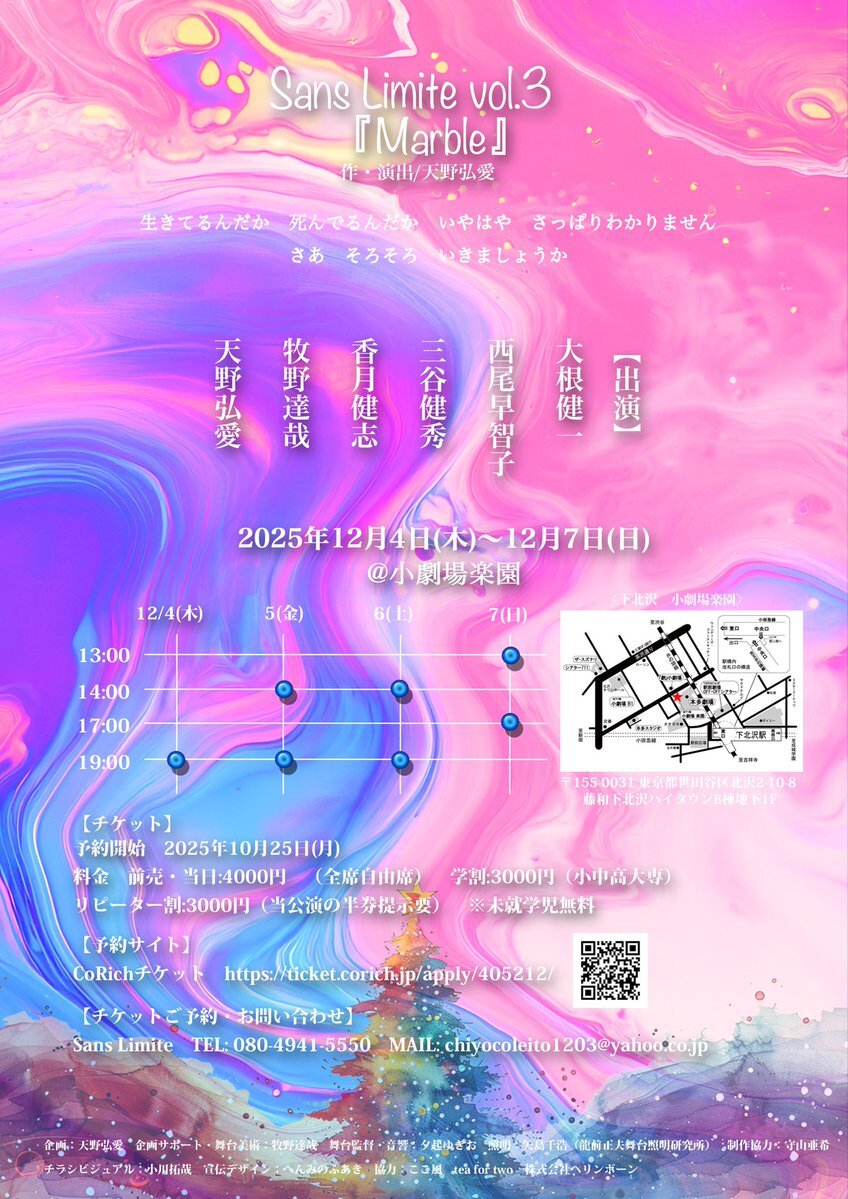 Sans Limite vol.3『Marble』 2025年12月4日(木)〜12月7日(日) @小劇場楽園 生きてるんだか 死んでるんだか いやはや さっぱりわかりません さあ そろそろ いきましょうか ほんの少し?未来のお話 愛すべき哀しい登場人物たちが織りなす ブラックで温かい、絶望の童話 #サンリミット #マーブル