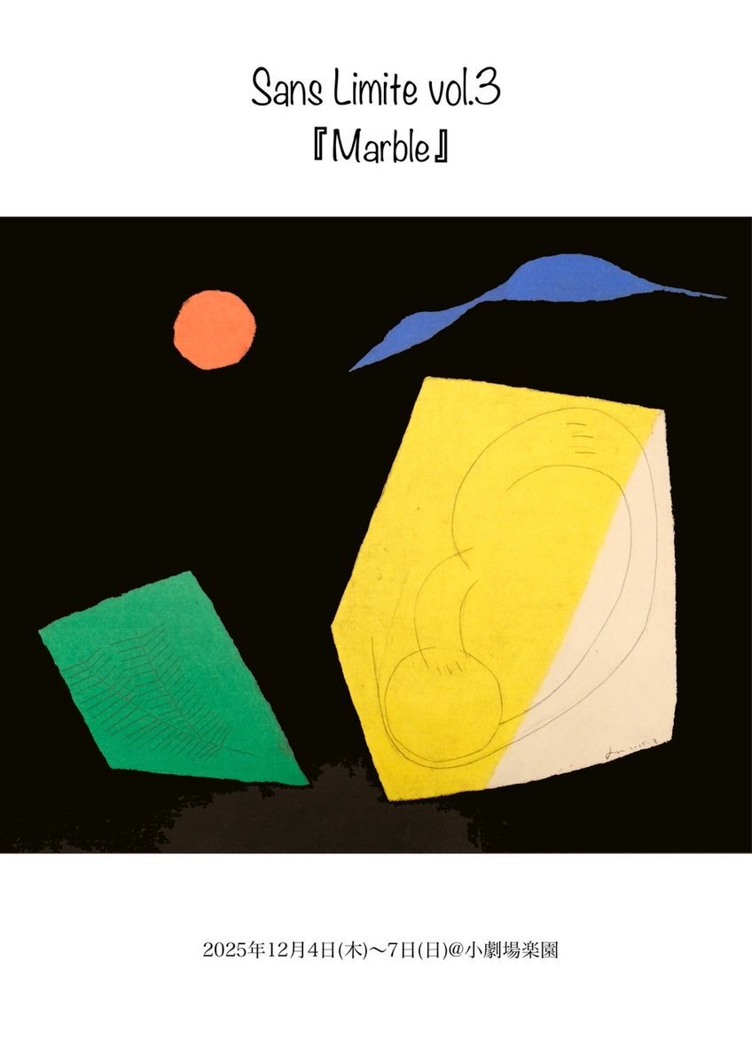 Sans Limite vol.3『Marble』 2025年12月4日(木)〜12月7日(日) @小劇場楽園 生きてるんだか 死んでるんだか いやはや さっぱりわかりません さあ そろそろ いきましょうか ほんの少し?未来のお話 愛すべき哀しい登場人物たちが織りなす ブラックで温かい、絶望の童話 #サンリミット #マーブル pic.x.com/KEWnnrIKO0