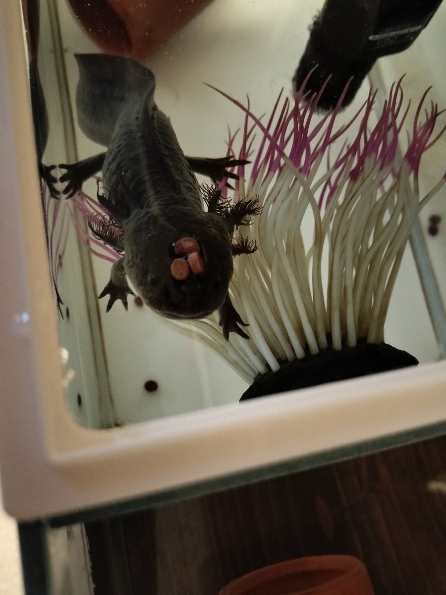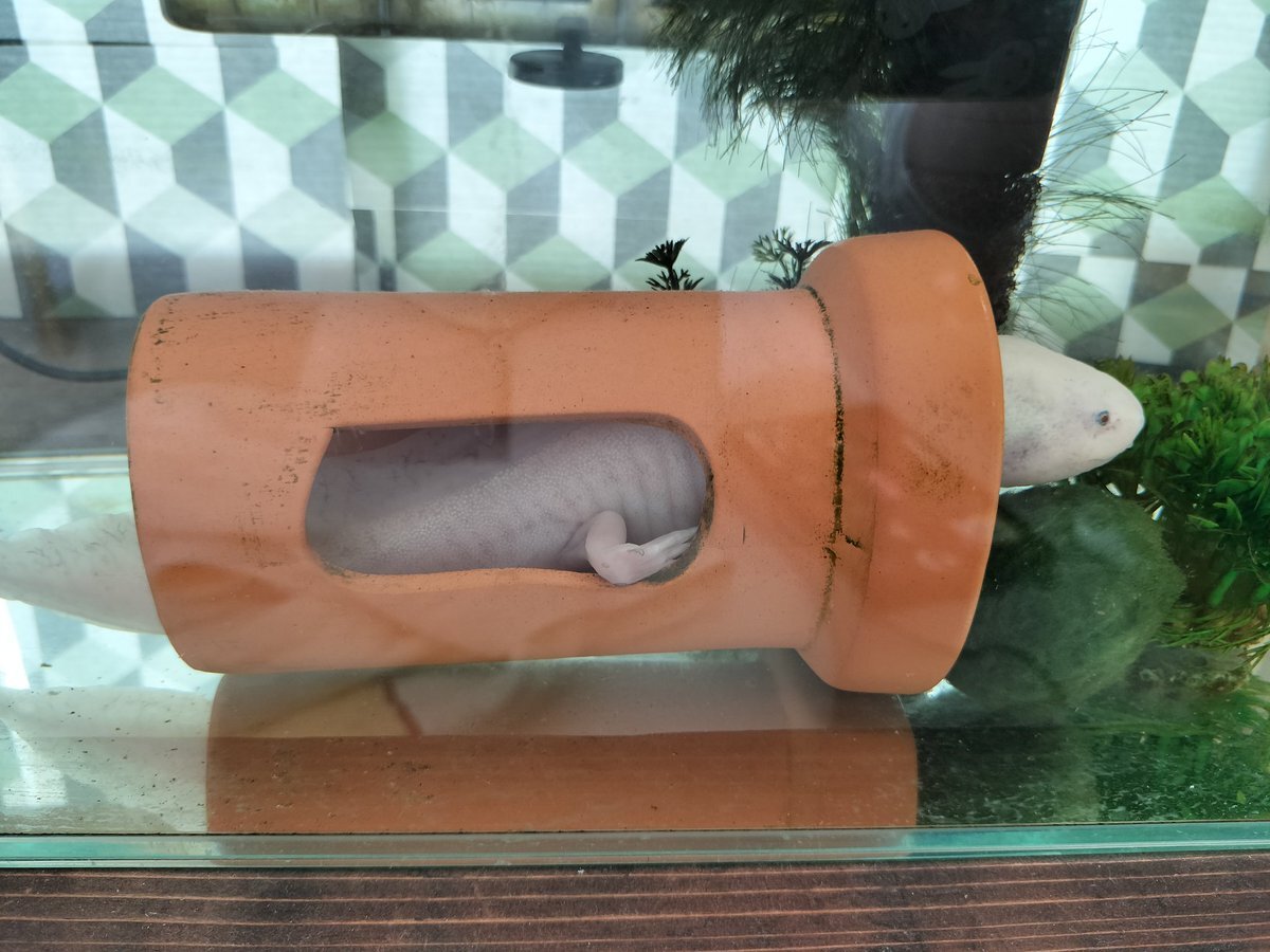 おもしろい構図だった。 おたま大きくなったから新しい土管買ってあげなくちゃ! うぱは本当に大きくなった。もっちりとしていてかわいい。 #ウーパールーパー #リューシスティック #マーブル #アホロートル pic.x.com/tzw3mhQ8p6