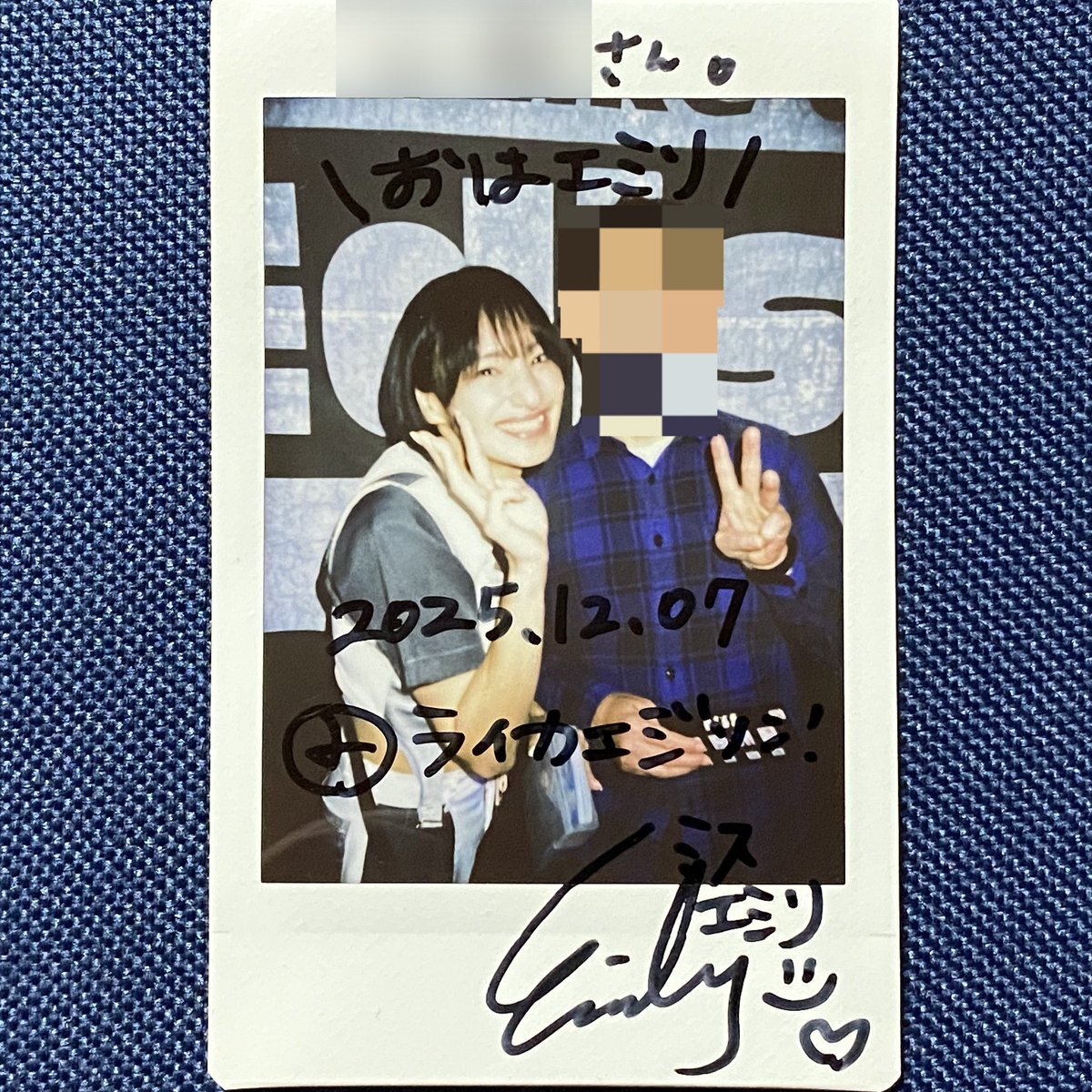 一昨日の思い出🤍 東京 新宿HEIST 【NiL東京定期公演 “BUZZER BEATER vol.11”】 エミリさんオンラインチェキ🤍 先日nattytimeでお会いした時に東京で受け取りたいとお願いしていて 特典会で名前を入れてもらったよ♪ エミリさん🤍 ありがと~☺️ #ミスエミリ #ニルズ拡大計画 pic.x.com/KQBmOrXMTh