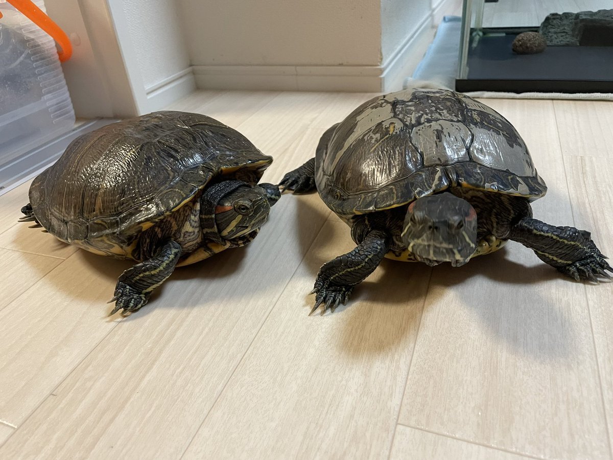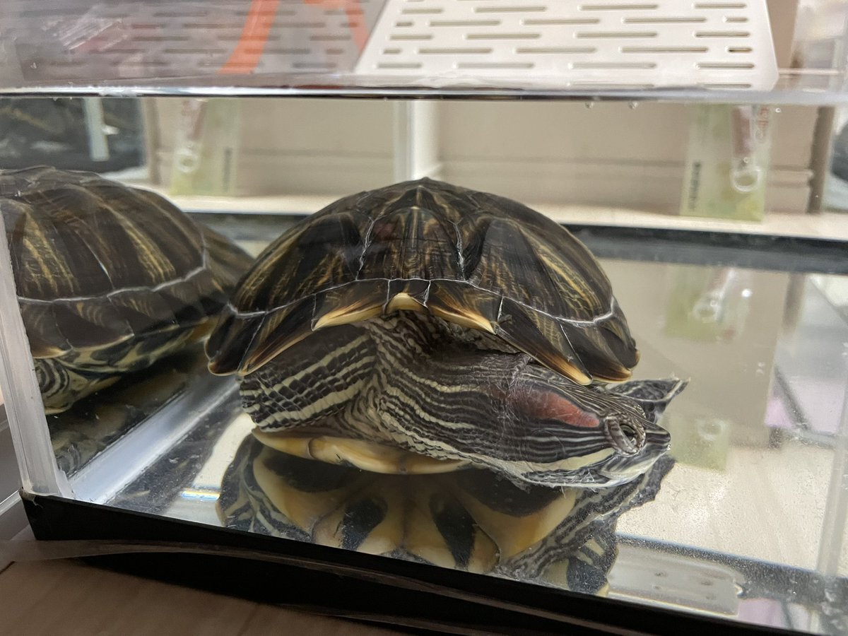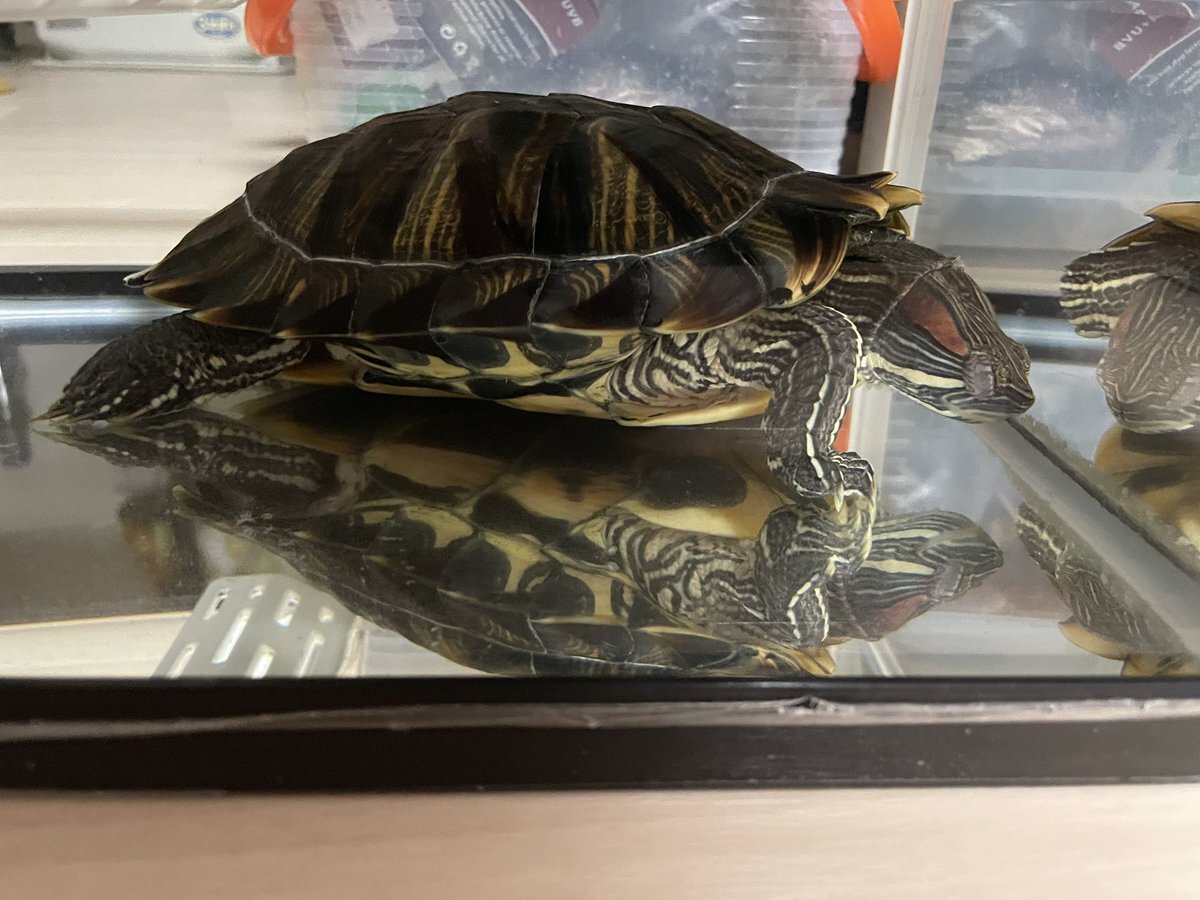 この傷キレイに治ってほんとによかった🥹 さすらいの亀さんだったから、きっといろいろあったんだろうな…😭 ていうか大きくなったね〜!(笑) #ミシシッピアカミミガメ #ミドリガメ pic.x.com/a08rdJay9b