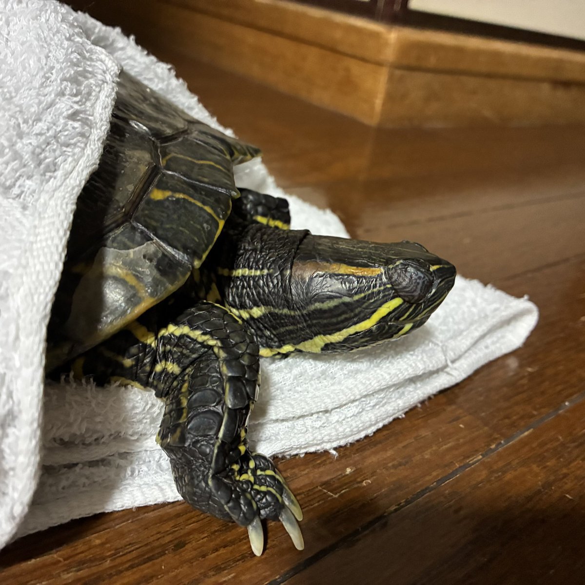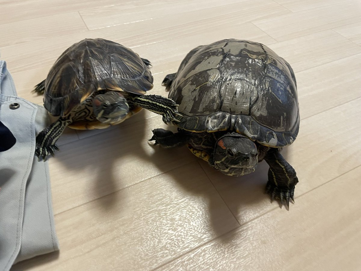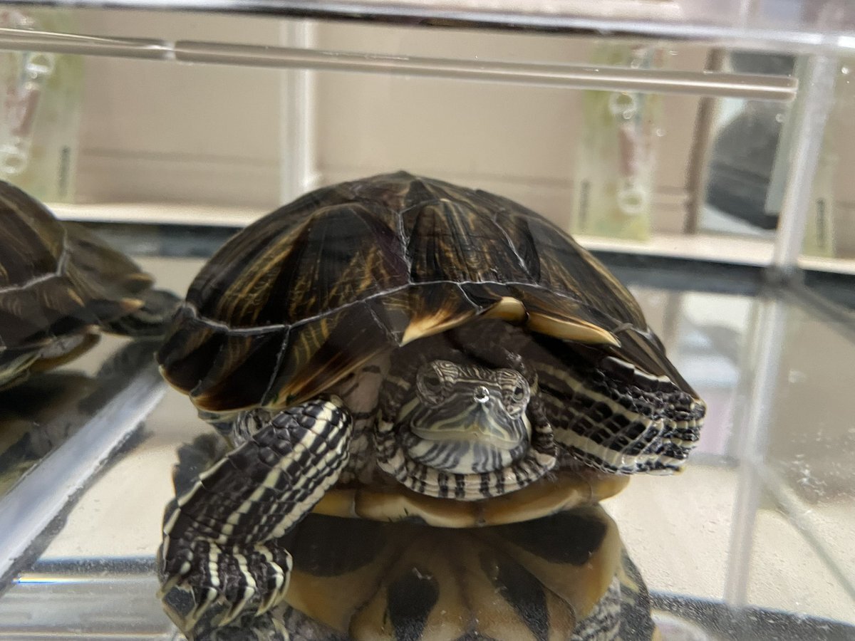この傷キレイに治ってほんとによかった🥹 さすらいの亀さんだったから、きっといろいろあったんだろうな…😭 ていうか大きくなったね〜!(笑) #ミシシッピアカミミガメ #ミドリガメ pic.x.com/a08rdJay9b