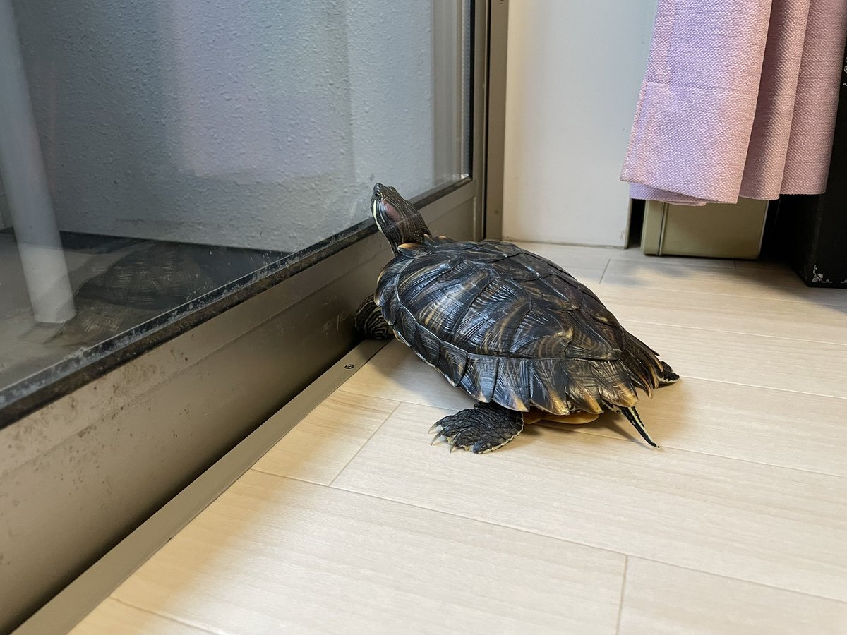かめきちさん、温浴終わって床に降ろしたら寝床に戻らんとそのまま寝てる…🐢💤 #かめ #カメ #亀 #ミドリガメ #みどりがめ #ミシシッピアカミミガメ #アカミミ魅力拡散 pic.x.com/Zs6SHWzFjh