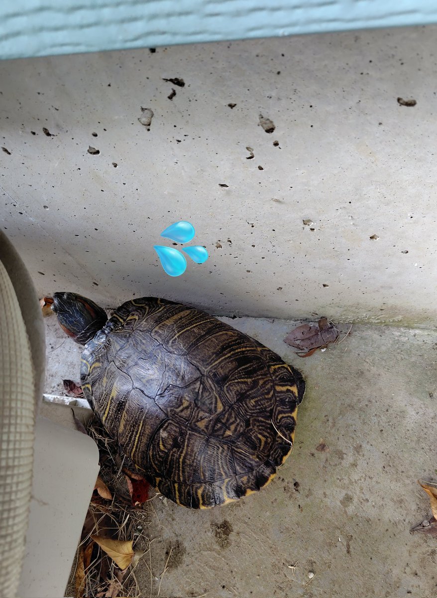 水汲みに行ってる間に💦 私に気付かれた途端に自力復活やめて虚無になったのでお手伝いさせていただきました🤣 🐢「ムリ…ハヤクモドシテー🙄」 #ミシシッピアカミミガメ #ミドリガメ pic.x.com/ibJksUJUVb