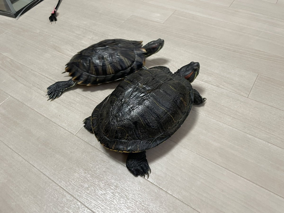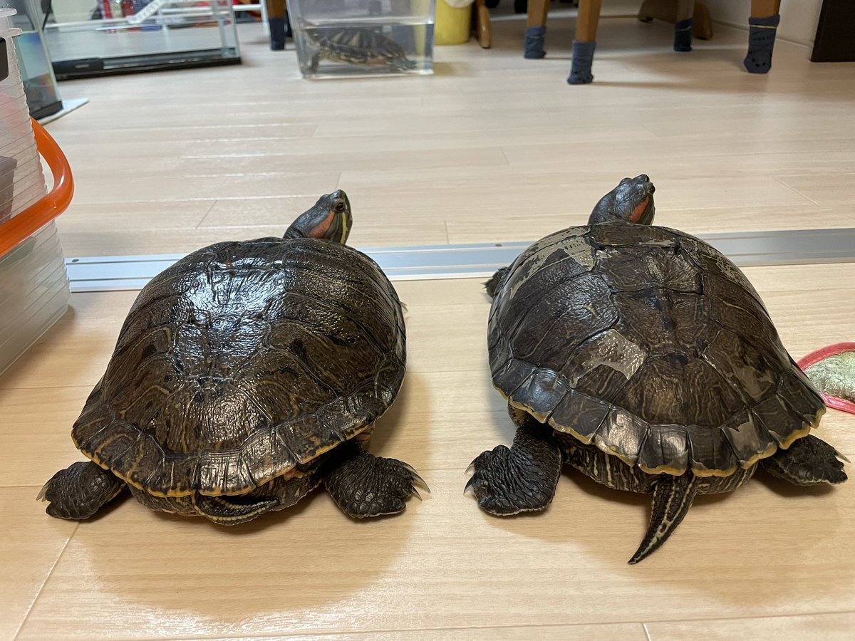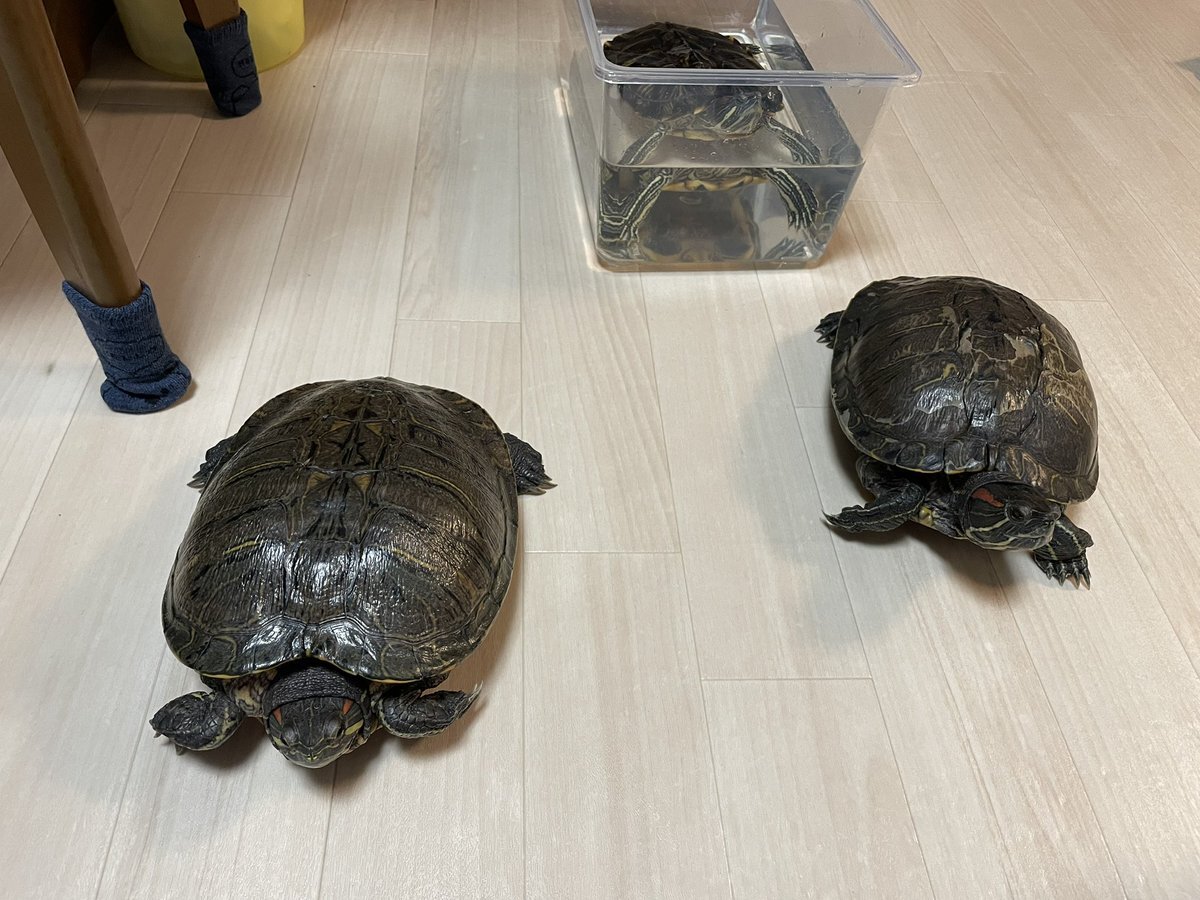#亀 #カメ #かめ #クサガメ #ミシシッピアカミミガメ #ミドリガメ 3匹の亀の水替え完了。クサガメのフォルテ♂。ミシシッピアカミミガメのモンブラン♀、ガメラ♀。 pic.x.com/ADORWIX0Sb
