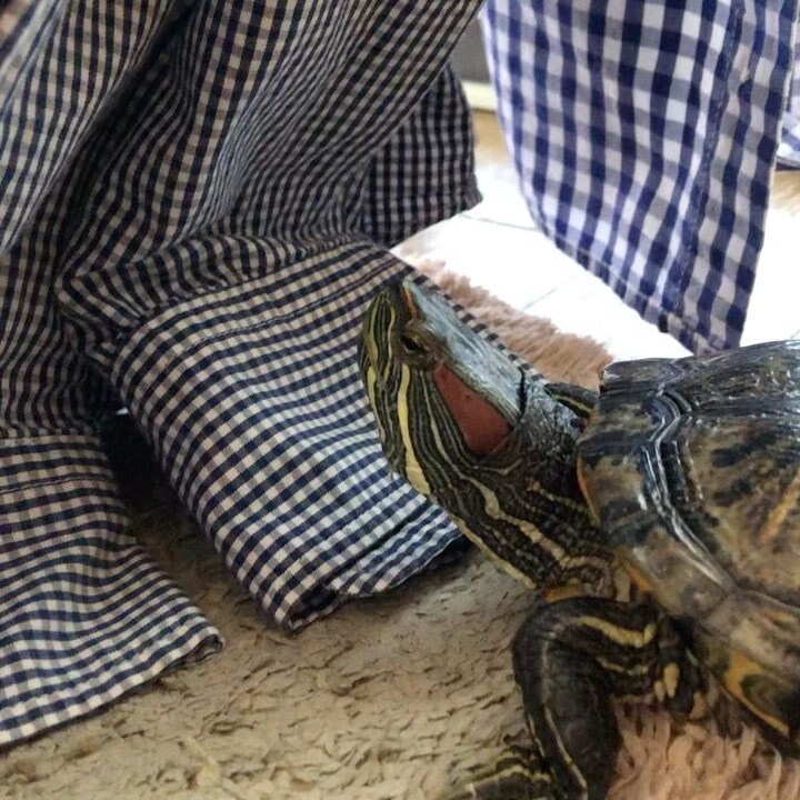 今日もお気に入りの チェック柄を ひたすら眺めてます(*⃙⃘ˊ꒳ˋ*⃙⃘) #ミシシッピアカミミガメ #ミドリガメ #カメ #カメのカメくん #亀 #亀のいる生活 #チェック柄 #チェック柄も好き #ギンガムチェック #ギンガムチェック好き #かめ #かめすたぐらむ pic.x.com/sreW20f9VJ