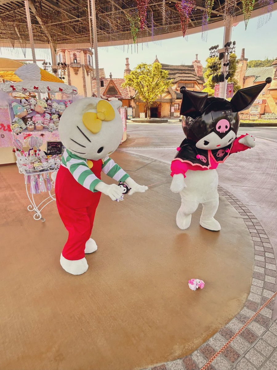 ❶ミミィちゃんがクロミちゃんが持つ ぬいぐるみを選んであげる ❷「はい!マイメロちゃんね!」 「えぇ〜!?」 ❸「ほーれほれ(ぷらぷら)」 …プチッ ❹「「あああああああぁぁぁ!!」」 #ハーモニーランド #クロミちゃん #ミミィちゃん pic.x.com/lrpyoFzbBY