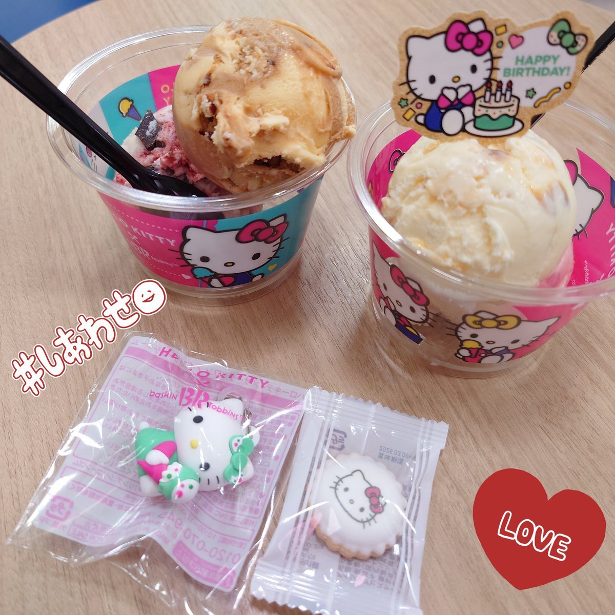 キティちゃん!ミミィちゃん! お誕生日おめでとう♡♡♡ 今日からスタートのサーティワンのキティミミィコラボ食べてきた♪ チャームもピックもスリーブももらえて満足(*˙ᵕ˙*) 次はポーチとブランケットだな! #サーティワン #ハローキティ #キティちゃん #ミミィちゃん pic.x.com/dO6FnyQRIj