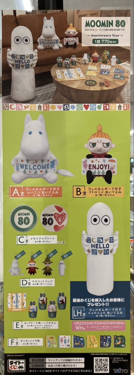 #ムーミン80周年 を記念した「タイトーくじ ムーミン Anniversary Year」が11月21日(金)より登場🗳 80周年ロゴやアートを使用したぬいぐるみやおしゃれな雑貨アイテムがラインアップ✨LH賞は、特大サイズのニョロニョロのぬいぐるみ♪ 詳しくは⇒moomin.co.jp/news/products/…