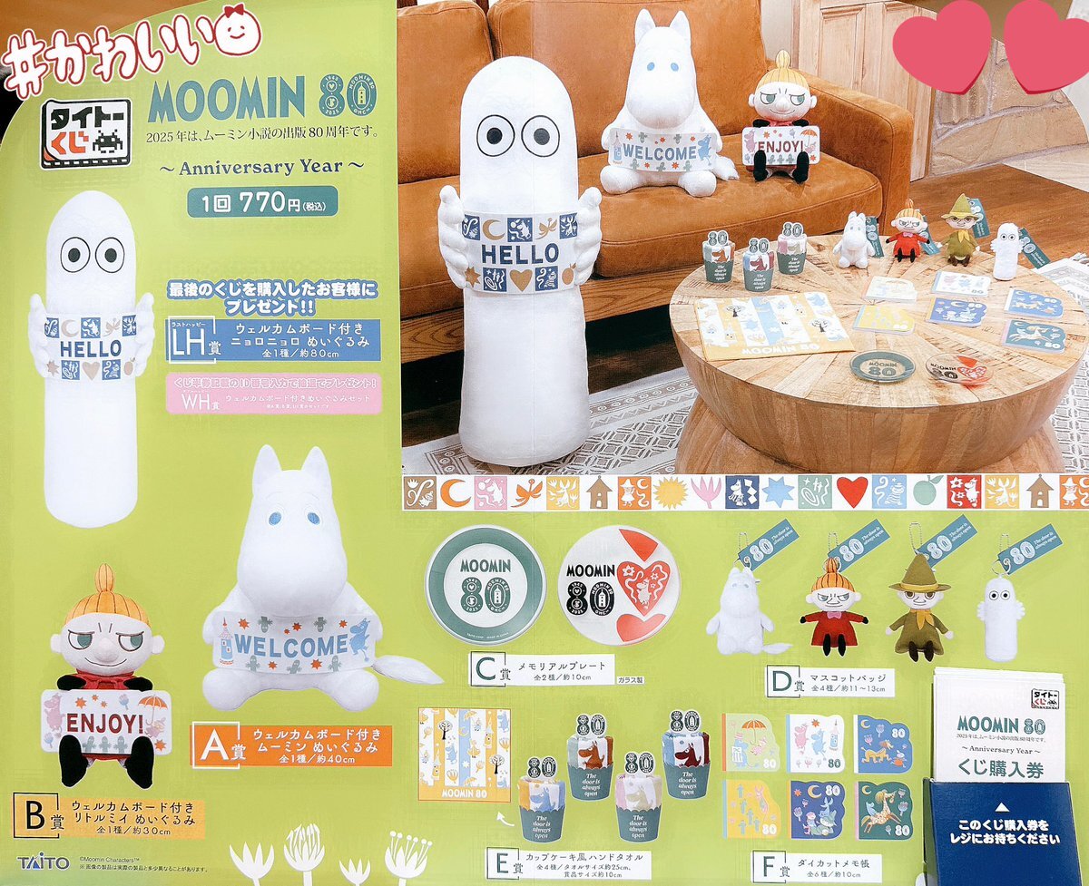 🌟販売くじ発売情報 2025年10月21日朝10時発売 #タイトーくじ #ムーミン Anniversary Year 80周年ロゴやアートを使用したアイテムがラインアップする80周年を記念したくじが登場! 発売日初日は1会計につき5回までの回数制限を設けさせていただきます(並びなおし可) pic.x.com/iEyiKvMMlF