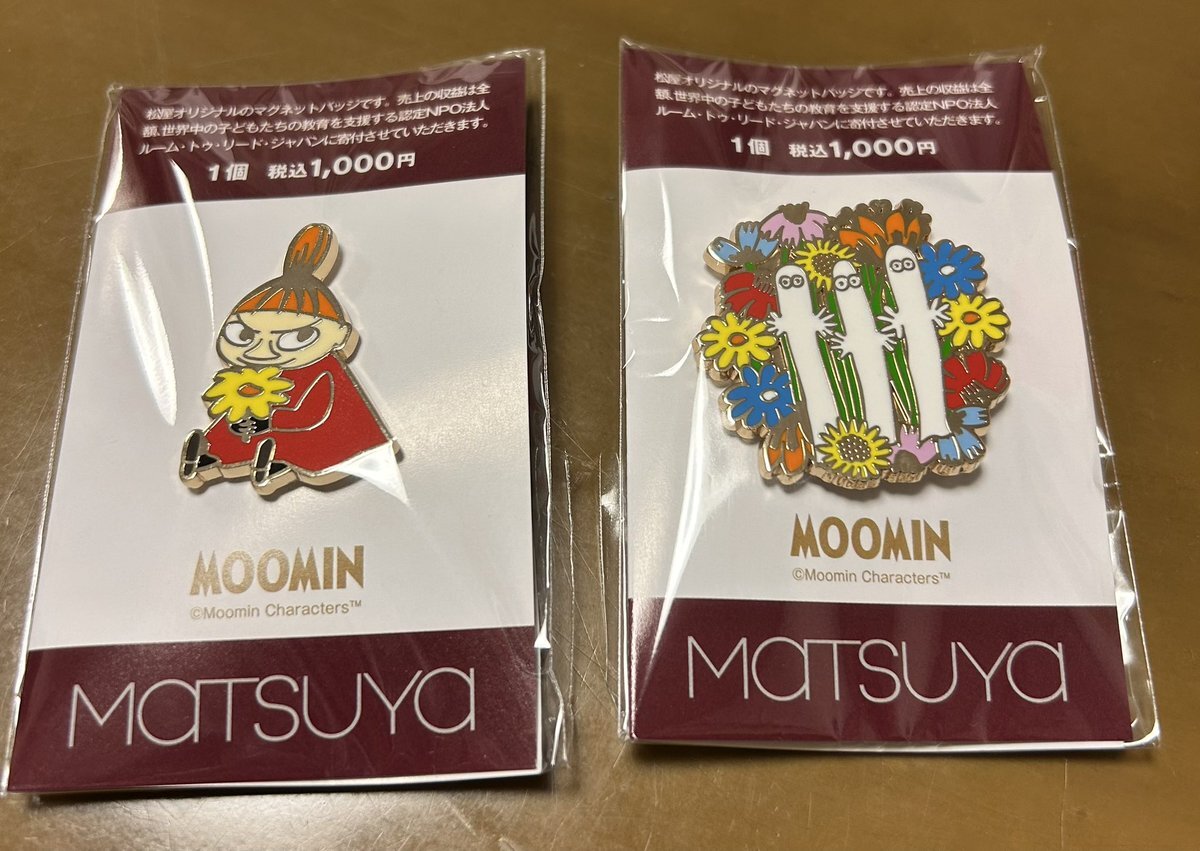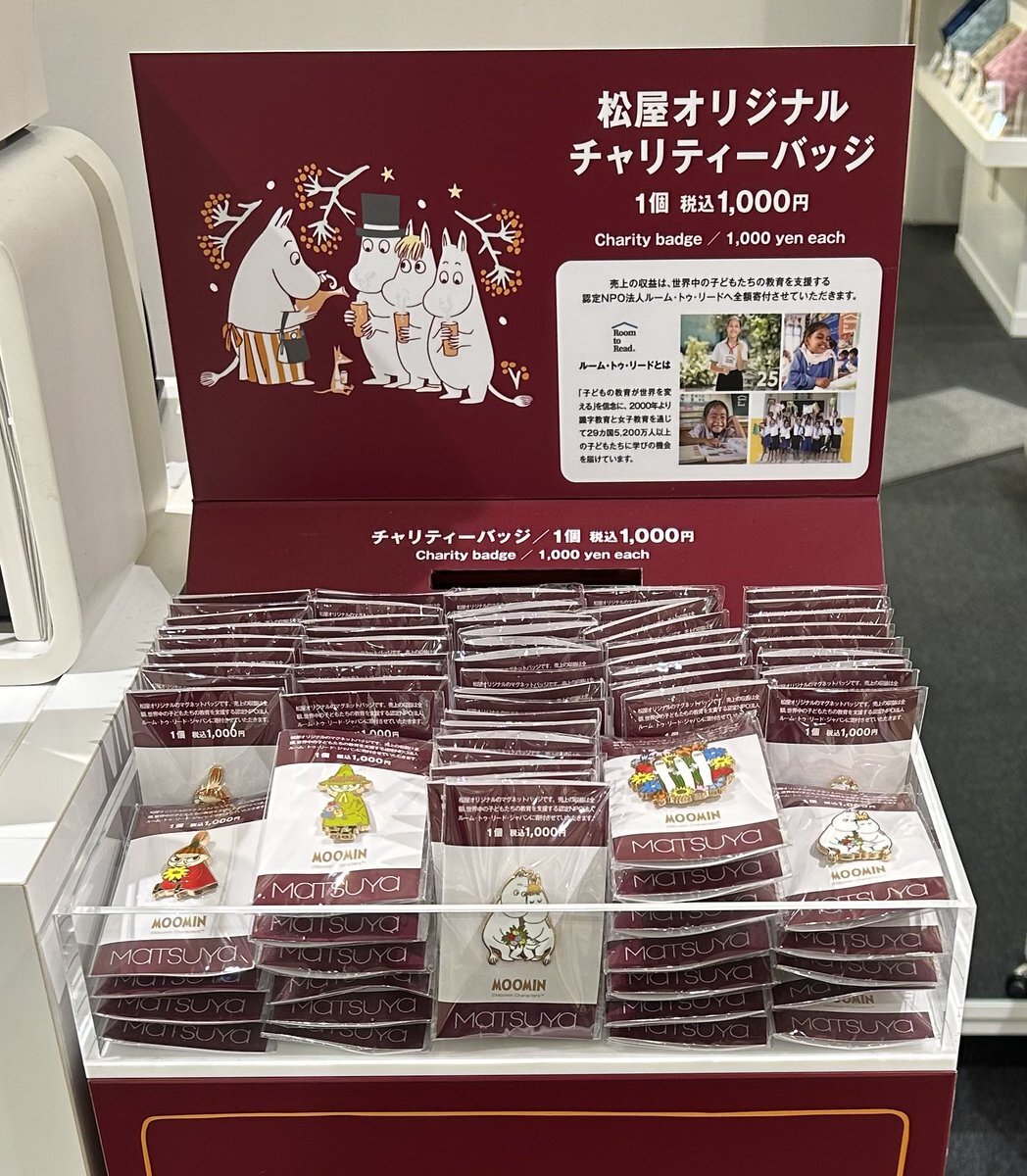 百貨店「松屋」にて、ムーミンと仲間たちの「松屋オリジナルチャリティーバッジ」販売中! 今年は、銀座店開店100周年をお祝いするようなデザインで4種類登場✨ チャリティー販売における収益の全額を、世界中の子どもたちの教育を支援する団体に寄付いたします。 moomin.co.jp/news/products/…