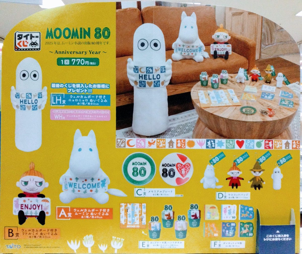 🍀 キャラクターコーナー🍀 11月21日(金)よりタイトーくじ『MOOMIN 80〜Anniversary Year〜』を販売いたします✨ 小説出版80周年を記念したアートとロゴを使用した とってもかわいいデザインです🎶 ご来店の際はぜひチェックしてみてください😊🌟 #ムーミン pic.x.com/JSJVXaxpxA