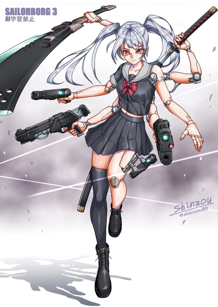 『セーラーボーグ3』 戦闘サイボーグ「BORG」シリーズ第3弾です!6本のロボットアームを持つ少女サイボーグ!メカ的なマニピュレーターではなく人間の腕を模したデザインにしました。とても楽しんで描けました♪ #イラスト #illustration #オリジナル #サイボーグ #メカ pic.x.com/f3XPQh3OCF