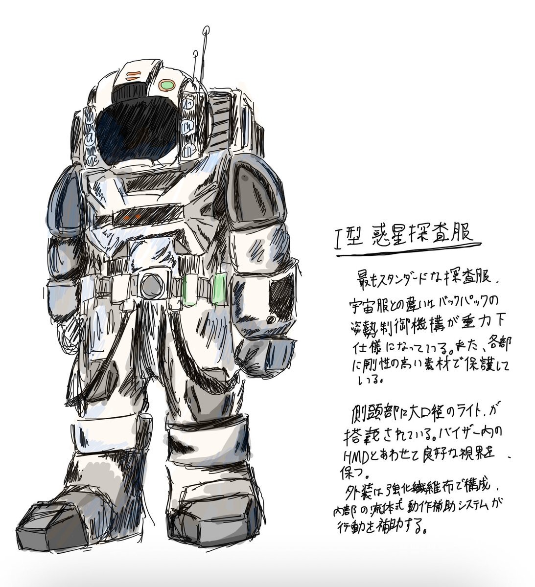 #イラスト #オリキャラ #絵師さんと繋がりたい #カクヨム #SF #メカ 最終宇宙航行記録 主人公の宇宙服 劇中では宇宙服呼称だが実際は惑星などの探査服的な感じ。一部パーツ組み替えたら宇宙用にもなるとかあるといいな〜 kakuyomu.jp/works/16818792… pic.x.com/GFCTB6OoPG