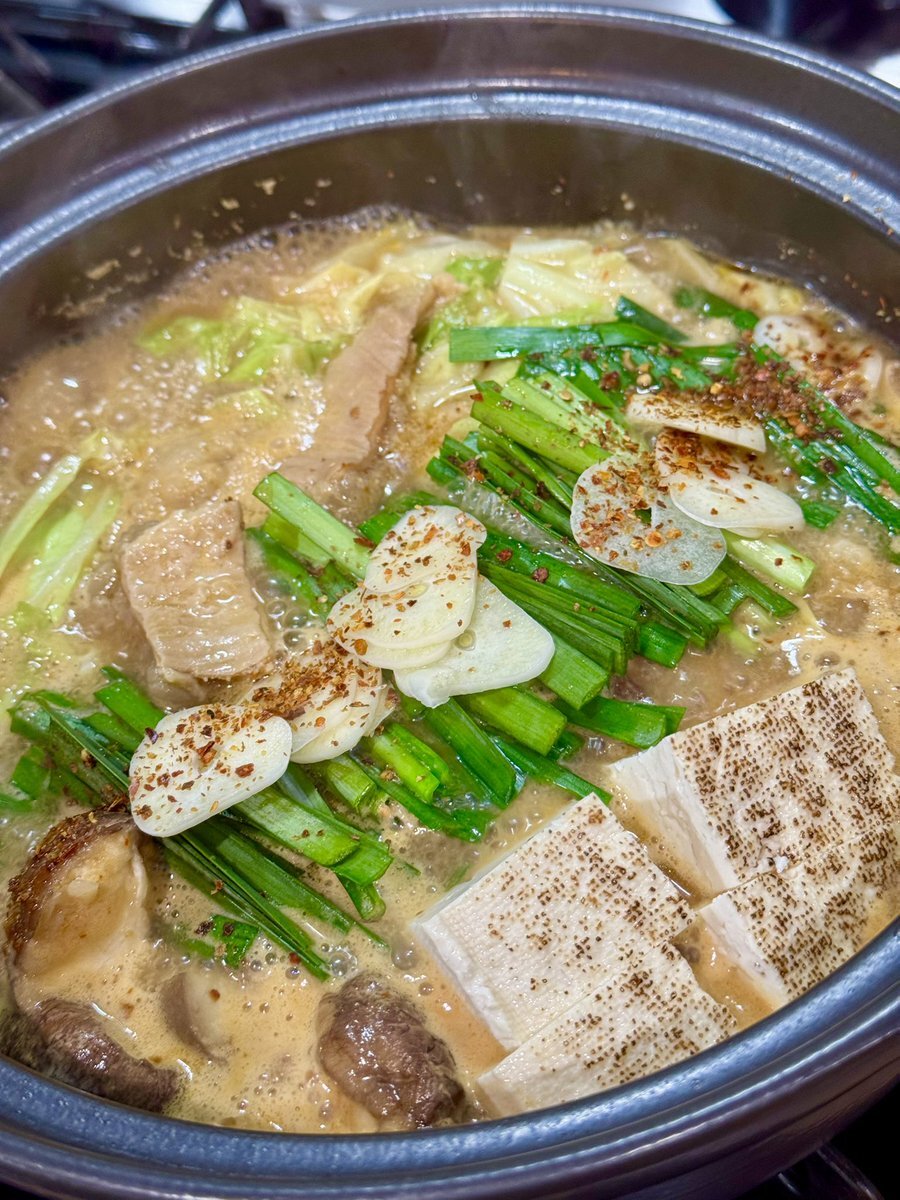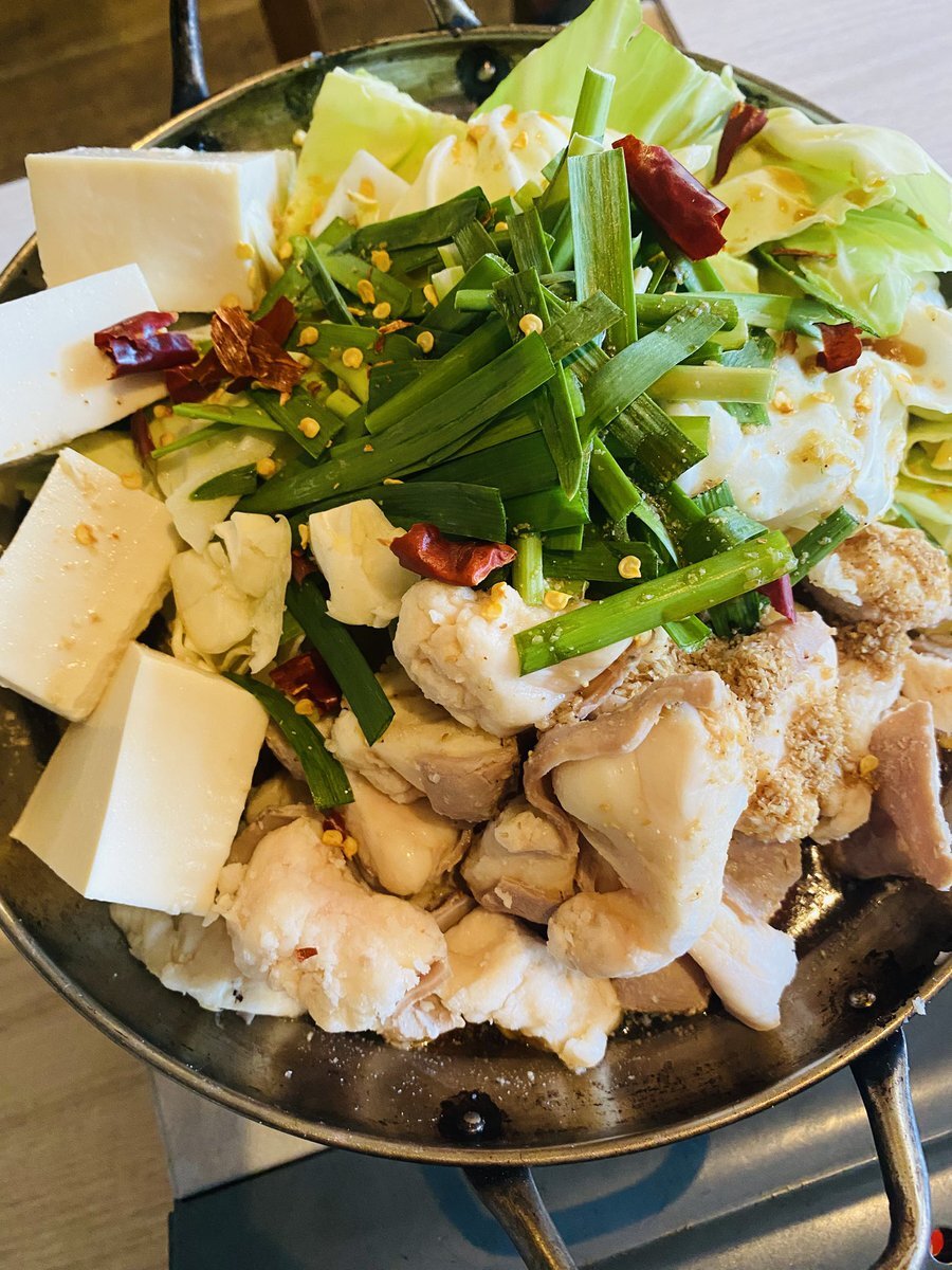 尼崎市場開放デーでゲットした和牛ホルモンでモツ鍋。スープは牛すじ茹で汁+昆布に能登名産日本三大魚醤のいしるで味付け。脂甘くてプリプリ、鶏だんごもエエ感じ。 #料理好きさんと繋がりたい #Twitter家庭料理部 #X家庭料理部 #料理記録 #家庭料理 #モツ鍋 pic.x.com/N7YnTodekz