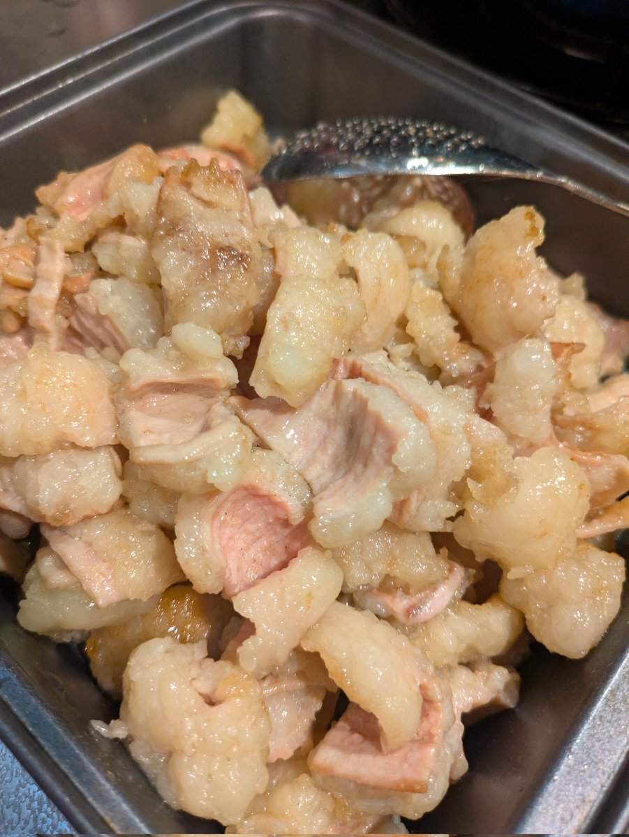 ★#りな飯 速報★ モツの下処理終わり🍲 モツを焼くときは脂が透明になるまで火入れして、最後に脂をしっかり切ること!!(濁っている脂と水分はアクと臭み) これね、このまま塩コショウでも美味しく召し上がれます♥ #モツ鍋 #KET #KAMEIDOINTHEAIR @INTHEAIRSETLIST pic.x.com/tHMPPAYXis x.com/EL_MAZDA/statu…