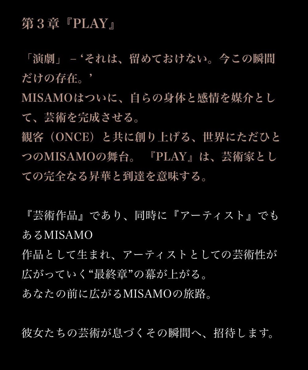 ❖━━━━━━━━━━━━━❖ 『PLAY』 特設サイト解禁 ❖━━━━━━━━━━━━━❖ ✧ MISAMO JAPAN 1st ALBUM『PLAY』✧ 2026.02.04 ALBUM RELEASE ✧ALBUM情報 🎟️twicejapan.com/feature/PLAY #MISAMO #MINA #SANA #MOMO #PLAY #MISAMO_PLAY