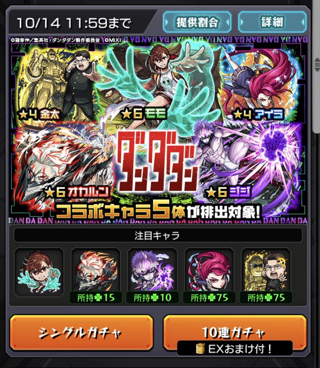 ねぇ~なんでモモちゃんだけ出ないのさ!? #モンスト #ダンダダンコラボ #オカルン×3 #ジジ×2 #モモちゃん×ZERO~w pic.x.com/wz4sU7UEcq