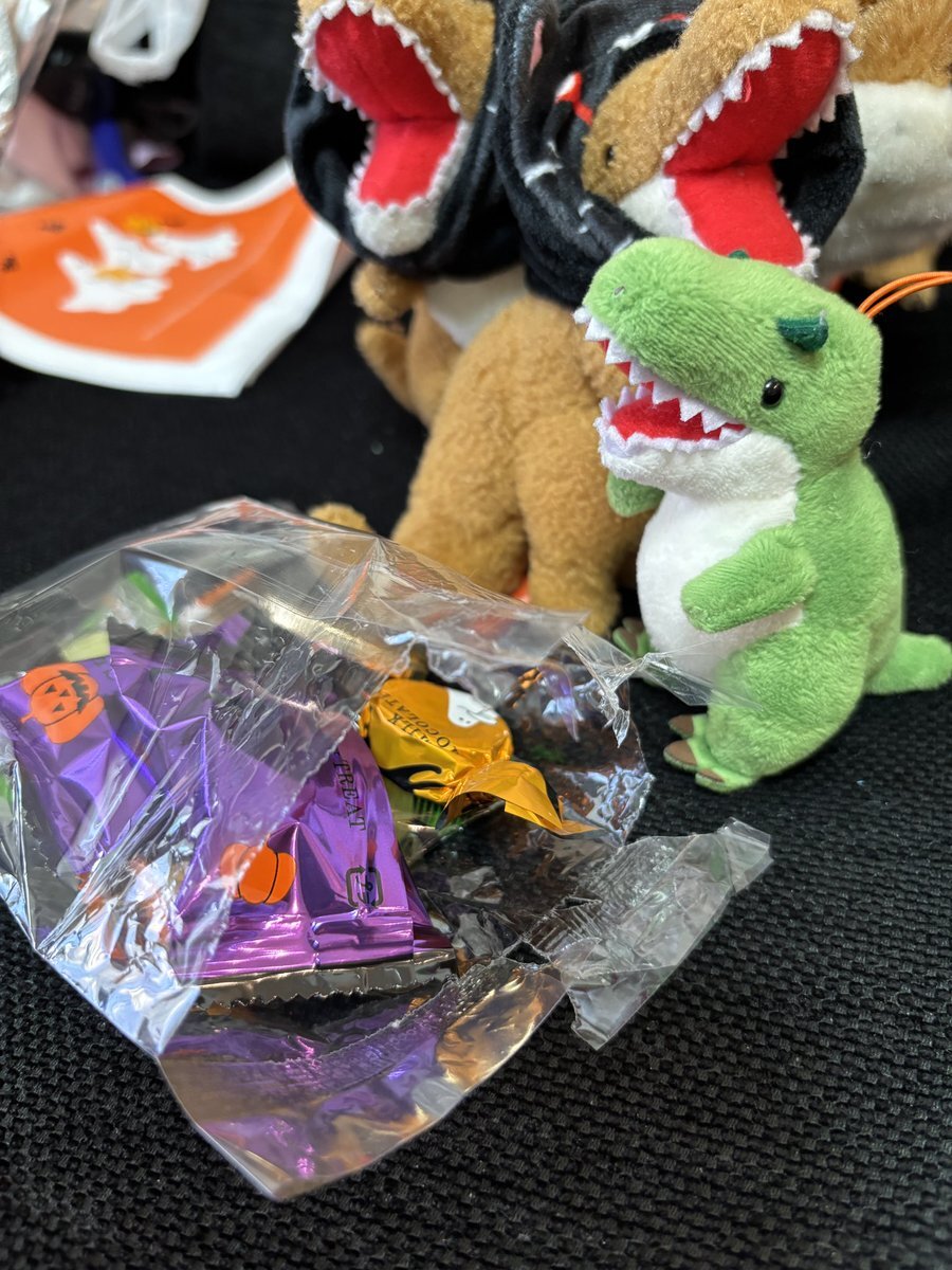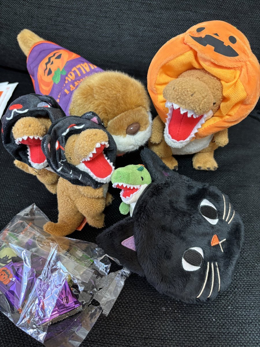 恐竜くん小『ポーチの中はこんなお菓子が入ってるぜっ!』 恐竜ちゃんM『きゅいっ🎃🍭🍬🍫💕』 恐竜くんマ『ミニが入って遊べるサイズ感だなっ!』 恐竜くんミ『ちっちゃな物を持ち歩くのに便利だぜっ!』 カワウソ『フラワーはモバイルバッテリーを入れてたっ!』 #恐竜くん2025 #モロゾフ pic.x.com/G8lDozrZak