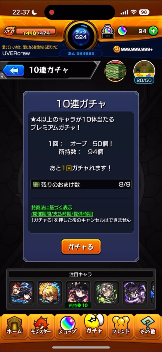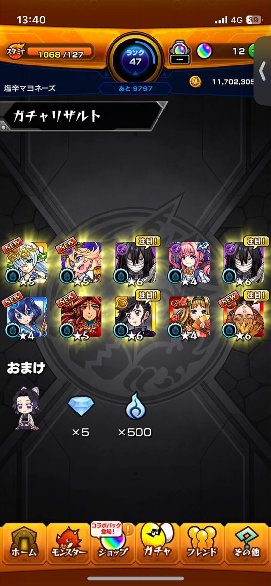 炭治郎&義勇さん1体 不死川実弥2体 良いのが手に入った。 お目当てのキャラ出たし 撤退しようかな? 義勇さん声良すぎやね。 不死川実弥は声優さん最高 鬼滅の刃知らないニワカだけど 声優さん目的でなかなか楽しめたわ‼️ コラボ感謝です!! #モンスターストライク #モンスト #鬼滅の刃 #コラボ