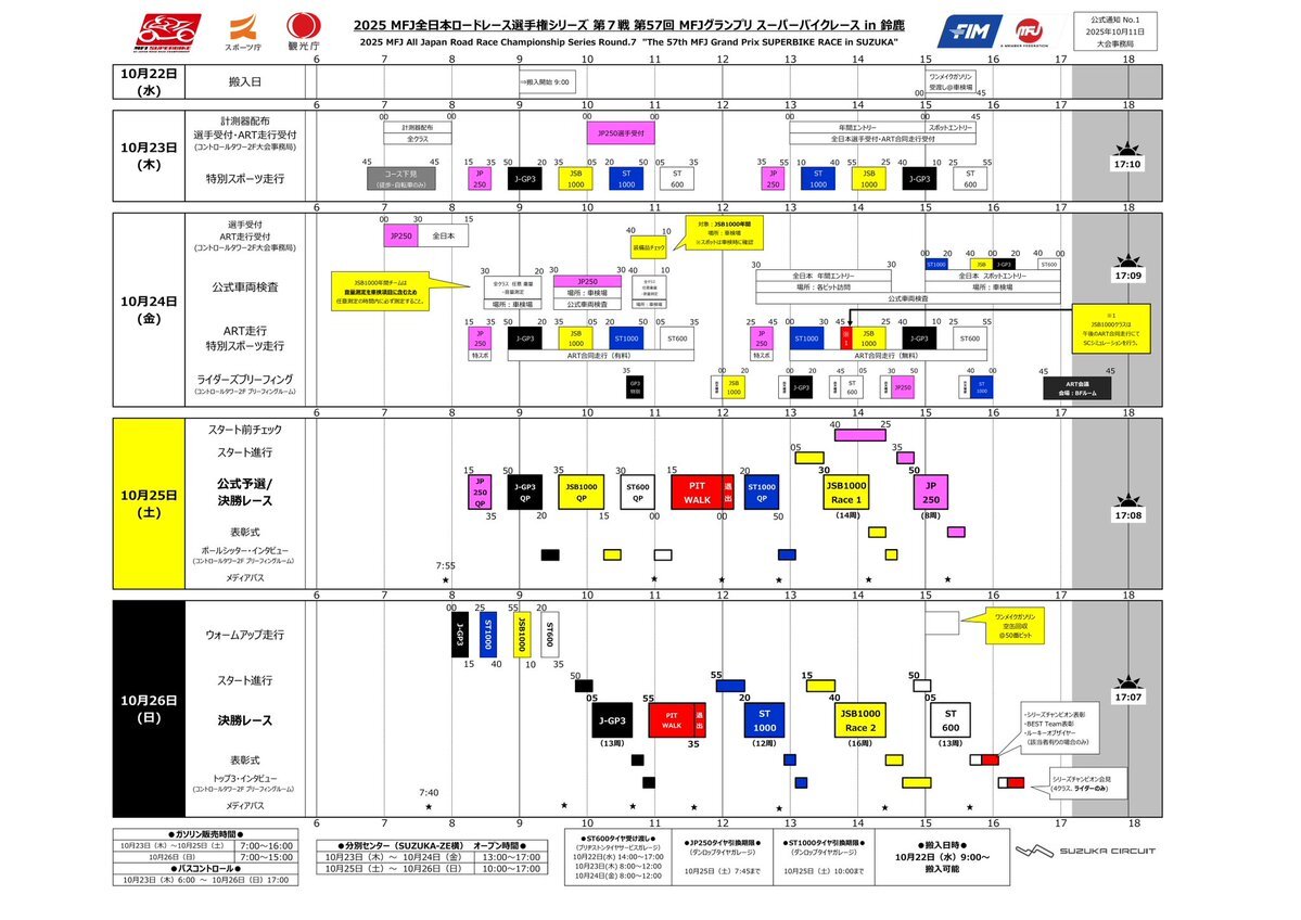 2025 全日本ロードレース選手権 Round.7 in 鈴鹿 🗓️タイムスケジュール #JRR #全日本ロード #全日本 #JSB1000 #ST1000 #ST600 #JGP3 #JP250 #モータースポーツ pic.x.com/wOysPOFP2K