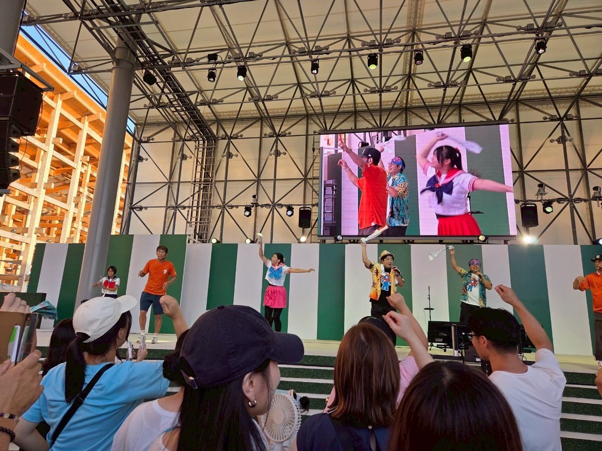 【7/19(土)盆踊りのアシタ】 #ザ・プラン9 #ヤナギブソン さん、#麒麟 #田村 さん、#もりやすバンバンビガロ さんと一緒に出演! 我々が振り付けた#湘南乃風 の#睡蓮花 の初お披露目!お客さんもタオルを振り回し、フェスのような盛り上がりでした! #EXPO2025Forever #EXPO2025 #大阪・関西万博 pic.x.com/WwxeEnlm71