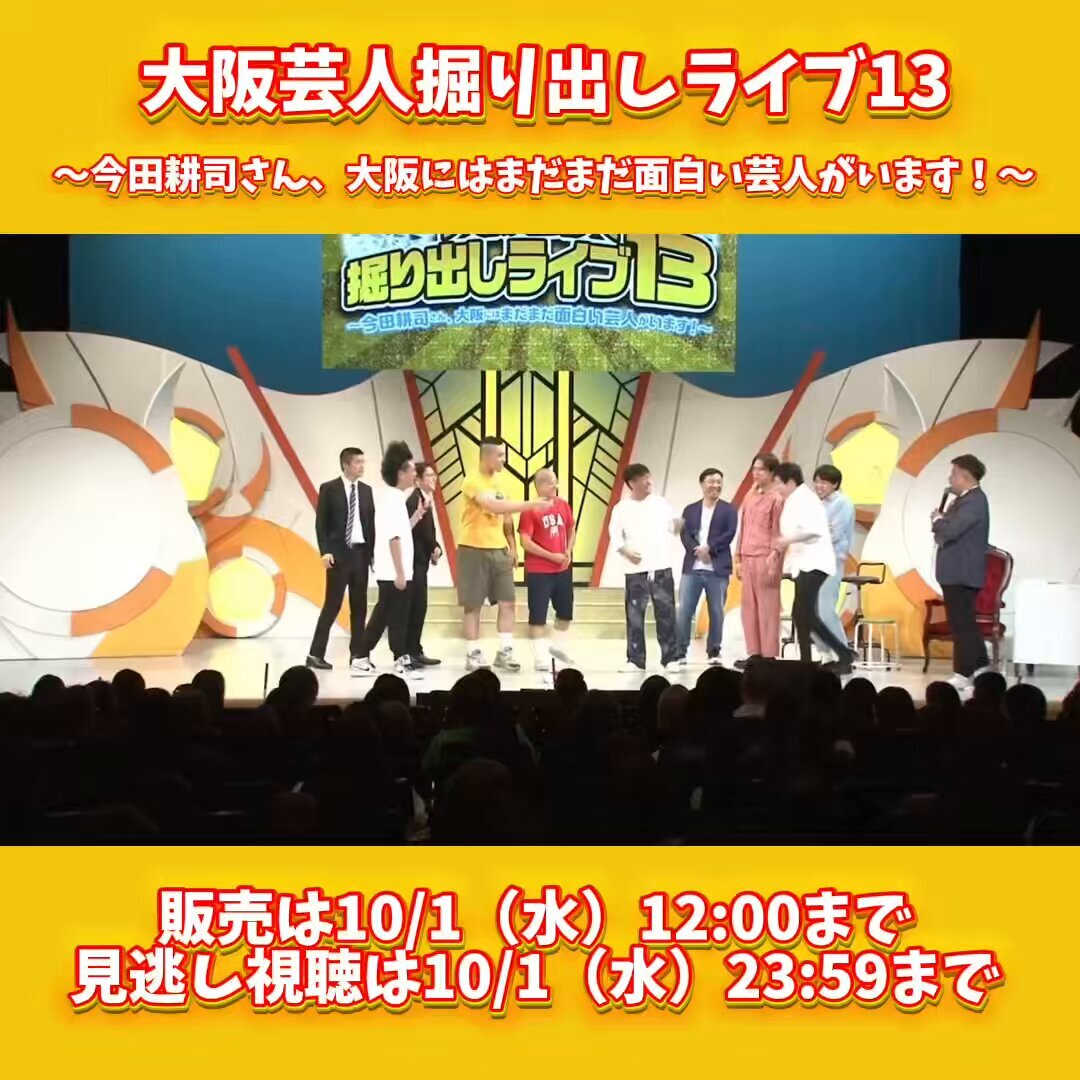 「大阪芸人掘り出しライブ13 〜今田耕司さん、大阪にはまだまだ面白い芸人がいます!〜」 9月24日(水)18:15〜 #よしもと漫才劇場 配信1,500円 ※10/1(水)23:59迄 #今田耕司 MC:#ミサイルマン #浅越ゴエ #ヤナギブソン #笑い飯 #月亭八光 #フースーヤ #FANYONLINEチケット online-ticket.yoshimoto.co.jp/products/%E5%A… x.com/manzaigekijyo/…