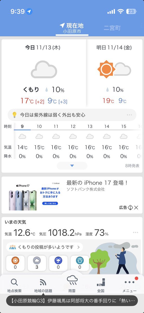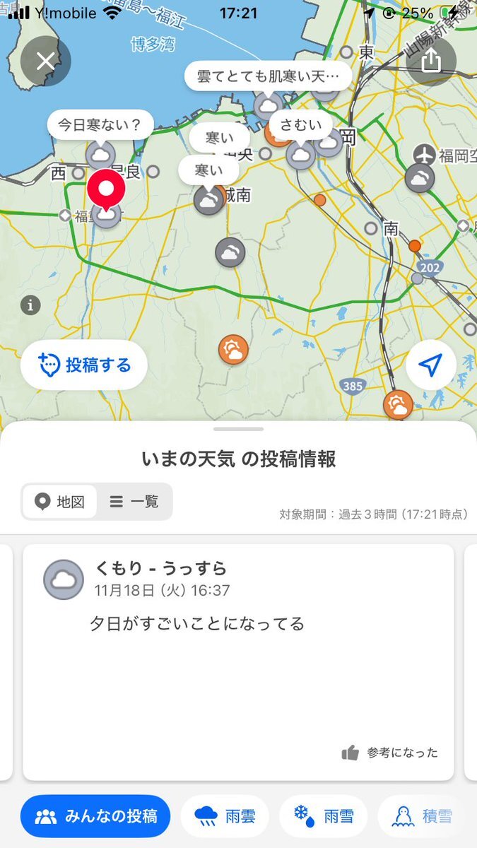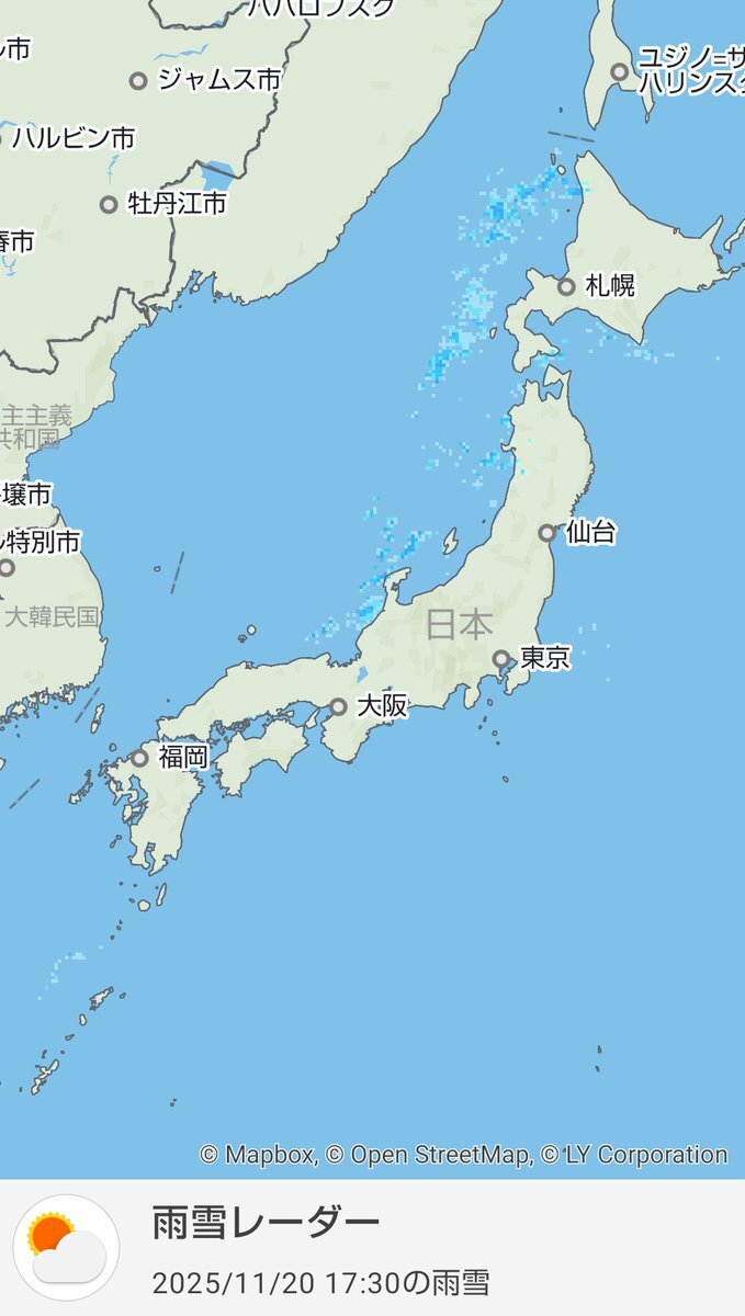 2025/11/20 17:33 🧥さむい〜。気温15℃。 あしたも、全国的に☀はれの予報です。 #ヤフー天気 #雨雪レーダー yahoo.jp/tLEfS7 pic.x.com/GFCdsoQrXY