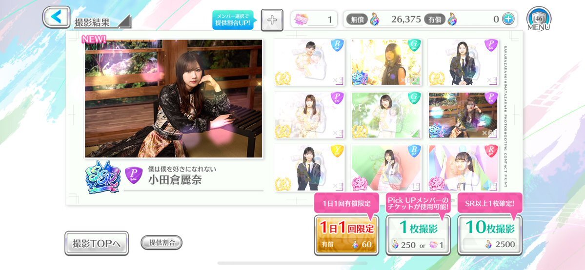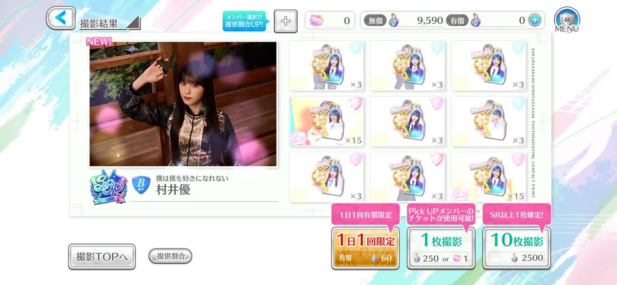 僕なれ引きました 60連してSSR4枚 確率的には 悪くないが優ちゃん中々出ず 10連目いきなり期待値高い ロードいきなり優ちゃんか あ 僕なれいのりでした で、まりの様 すり抜け こんなぎ僕なれ はー60連目期待出来る ロード どうせまた と思ってたら無事 優ちゃん降臨 ありがとうございま #ユニエア pic.x.com/D3XnkXUzXP