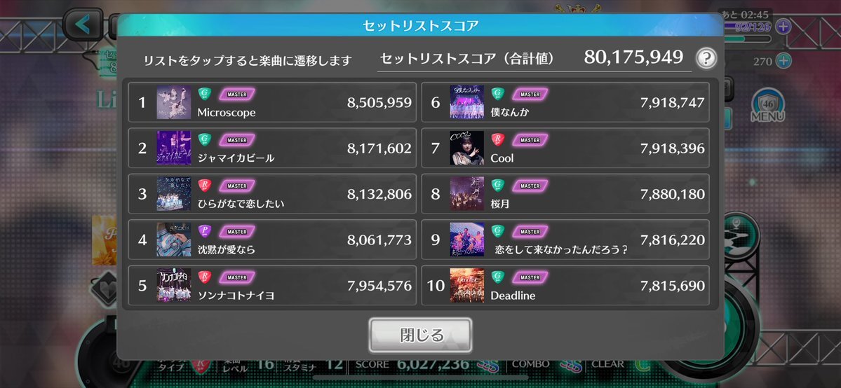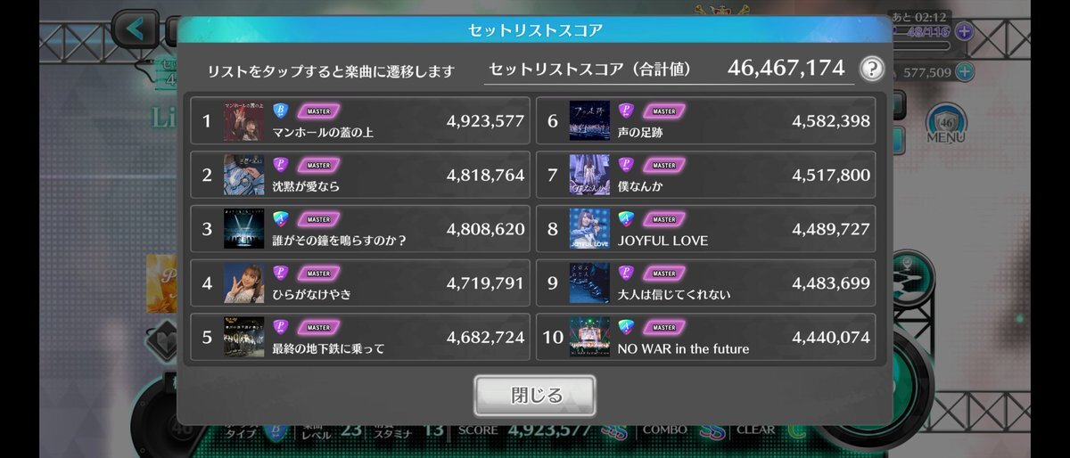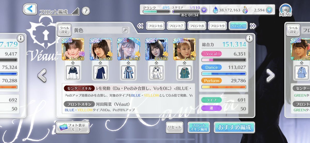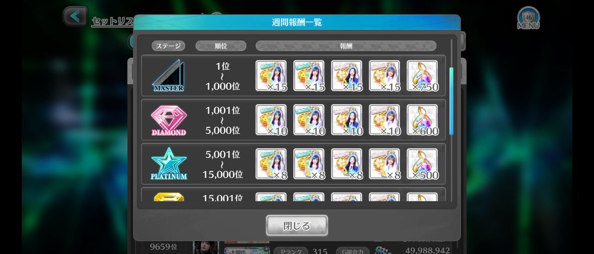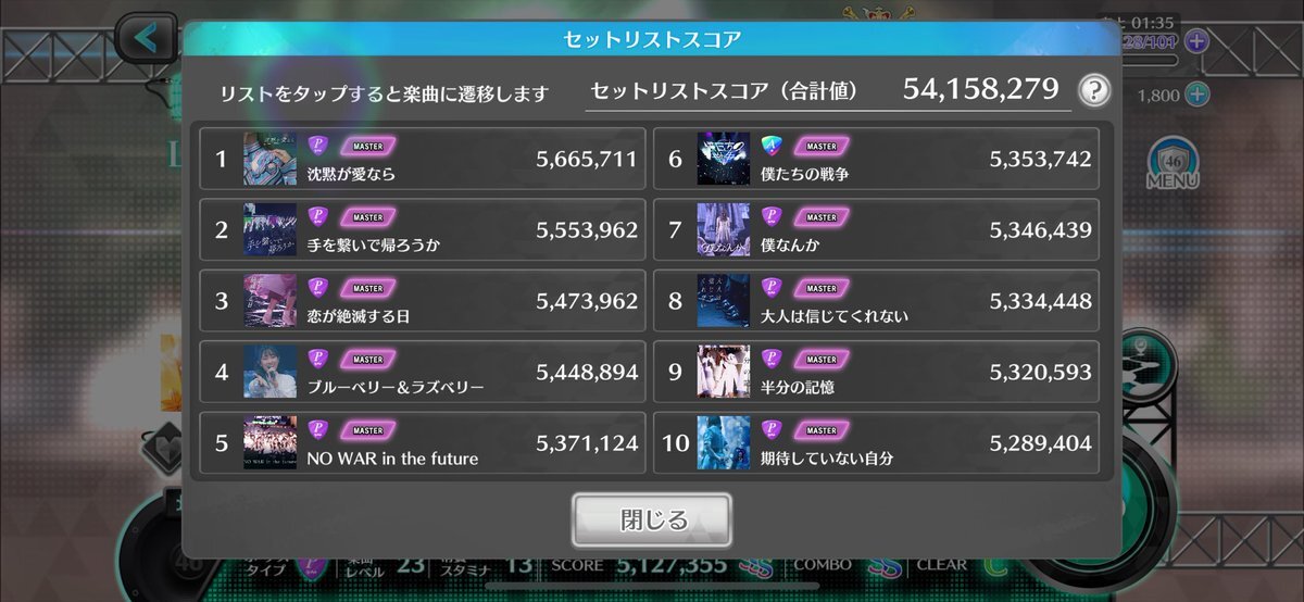 ビュー+T1を4人より河田さんの青でフリークボーナススキルが総合力上がったからこれで少しスコアタしたら400万セトリが上がってランキングも5000位も上がったけどdiamondまで上がるには更に1000万更新しないと入れないから明日まで無理だし諦めた😅 まだ伸びるけど続きはのんびりやります☆ #ユニエア pic.x.com/XC74P3JRQX