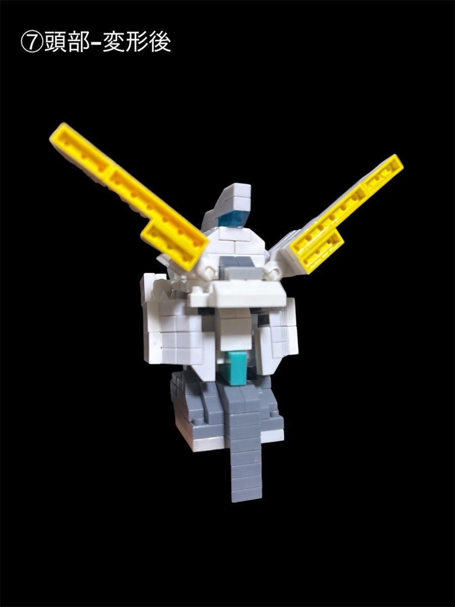 プチブロックで作ろう変形ユニコーンガンダムの変形ギミック紹介。 その⑦頭部 耳装甲を跳ね上げ、表裏ひっくり返し、前後逆転、フェイスも回転して前後逆転。耳装甲を戻してツノを展開して変形完了。 #ダイソー #プチブロック #ユニコーンガンダム #完全変形 pic.x.com/ZCk8RTYFQt